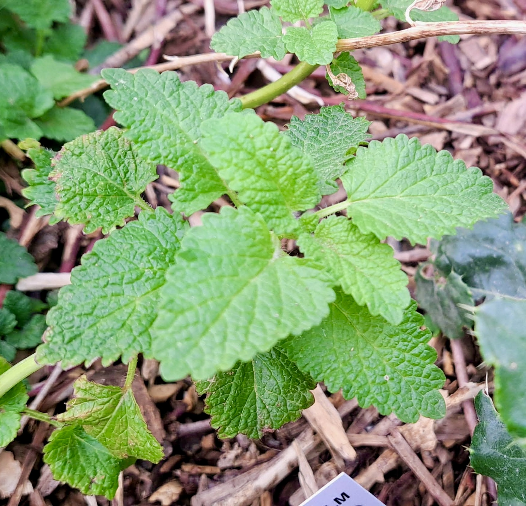 I chose lemon balm in particular because it’s listed as a good companion plant for blackberries, it’s shade-tolerant and I’m told it spreads as aggressively as mint. Its job is to outcompete the musk thistle and other invasive weeds that want to grow in that strip of ground.