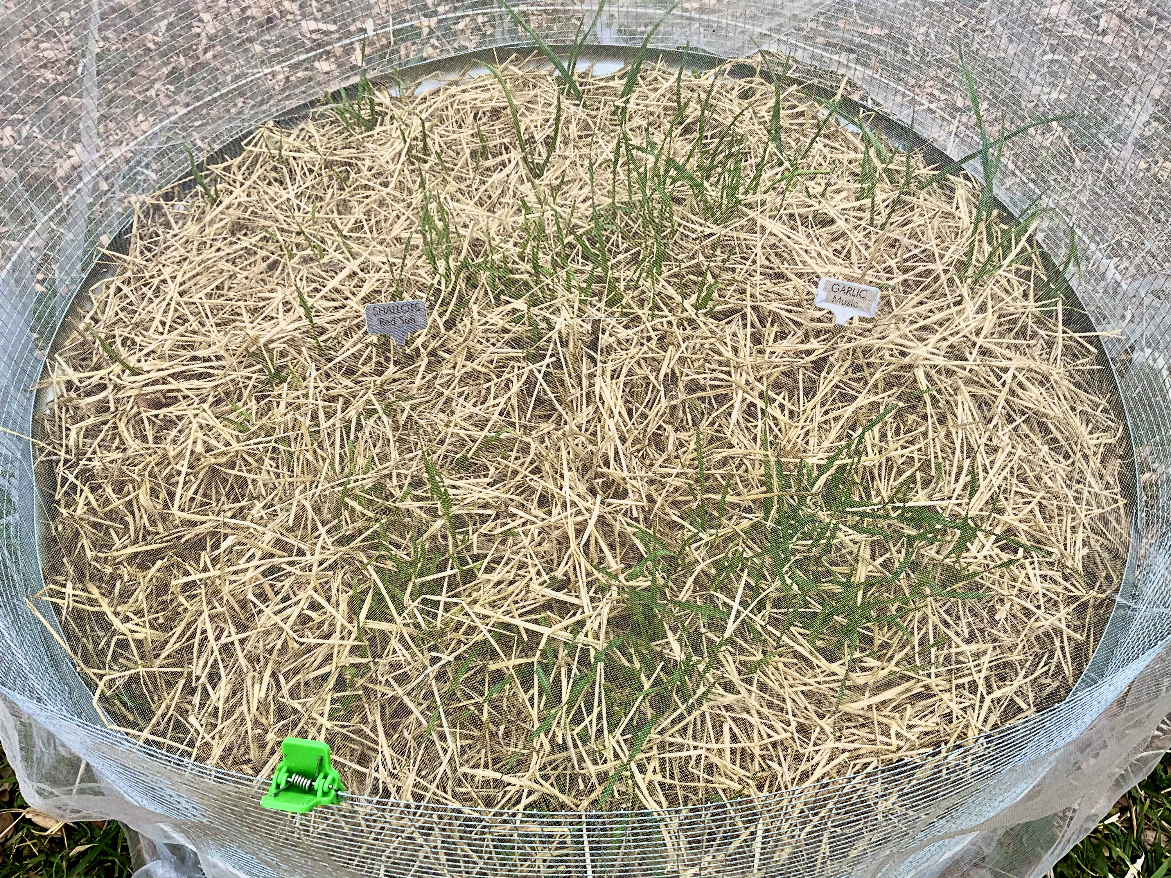 Most of the green sprouts in those pics are wheatgrass from the straw, but some of the softneck garlic did sprout in the warm fall weather. We have yet to get our first snow, which is highly unusual here for late November.