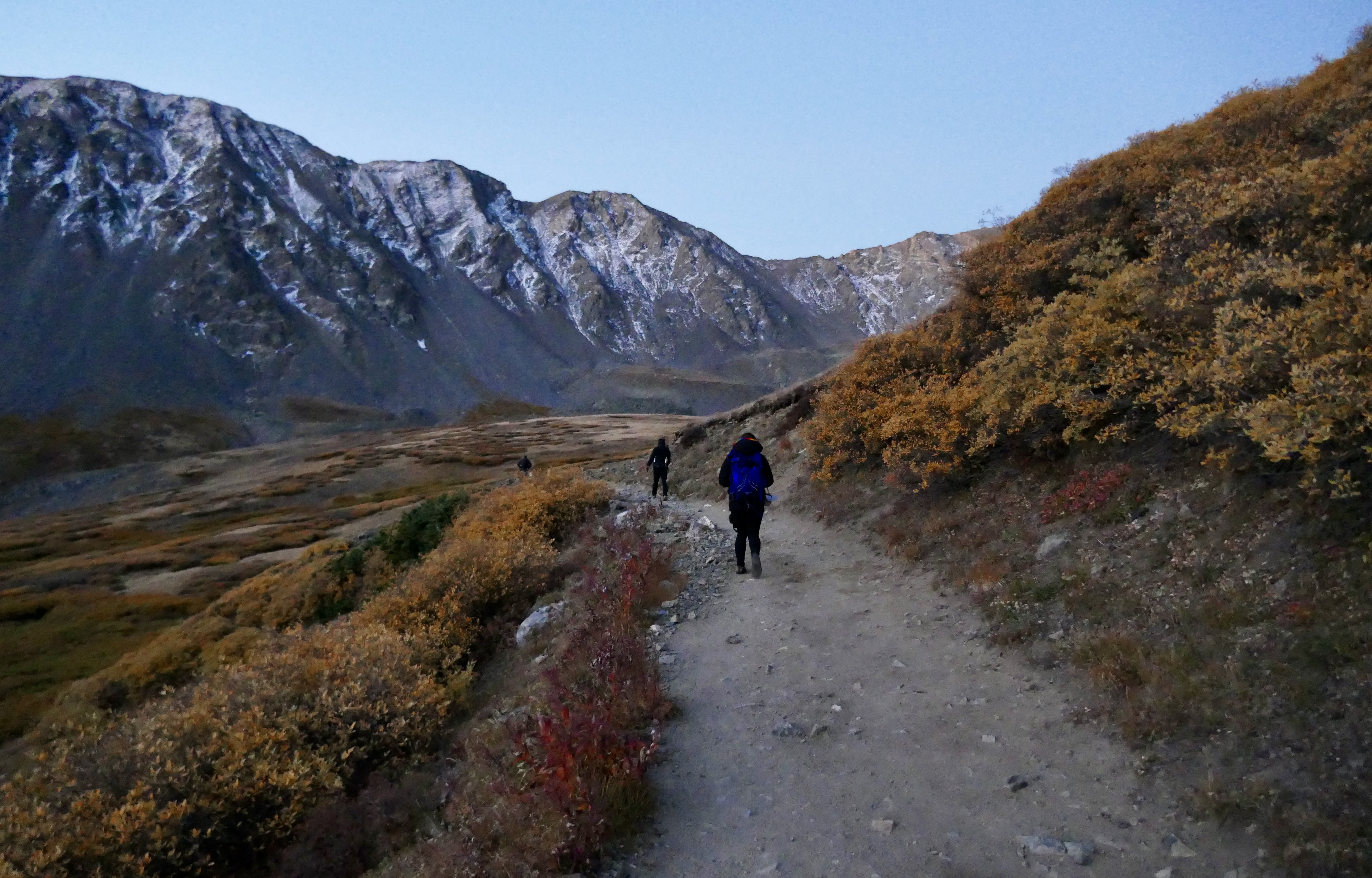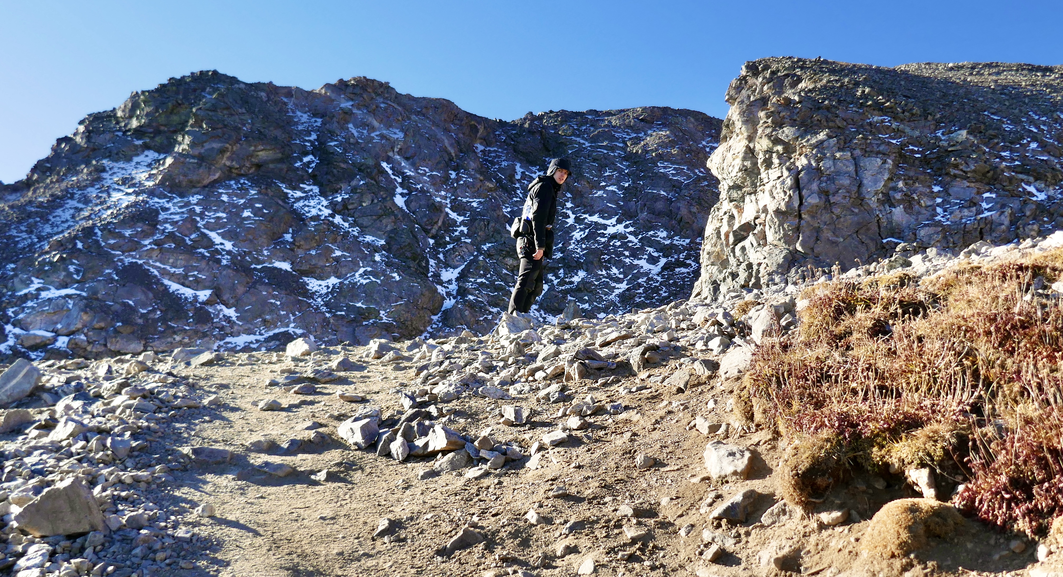 By 8am we were above the tree line, and the long shadows threw the mountains into sharp relief.