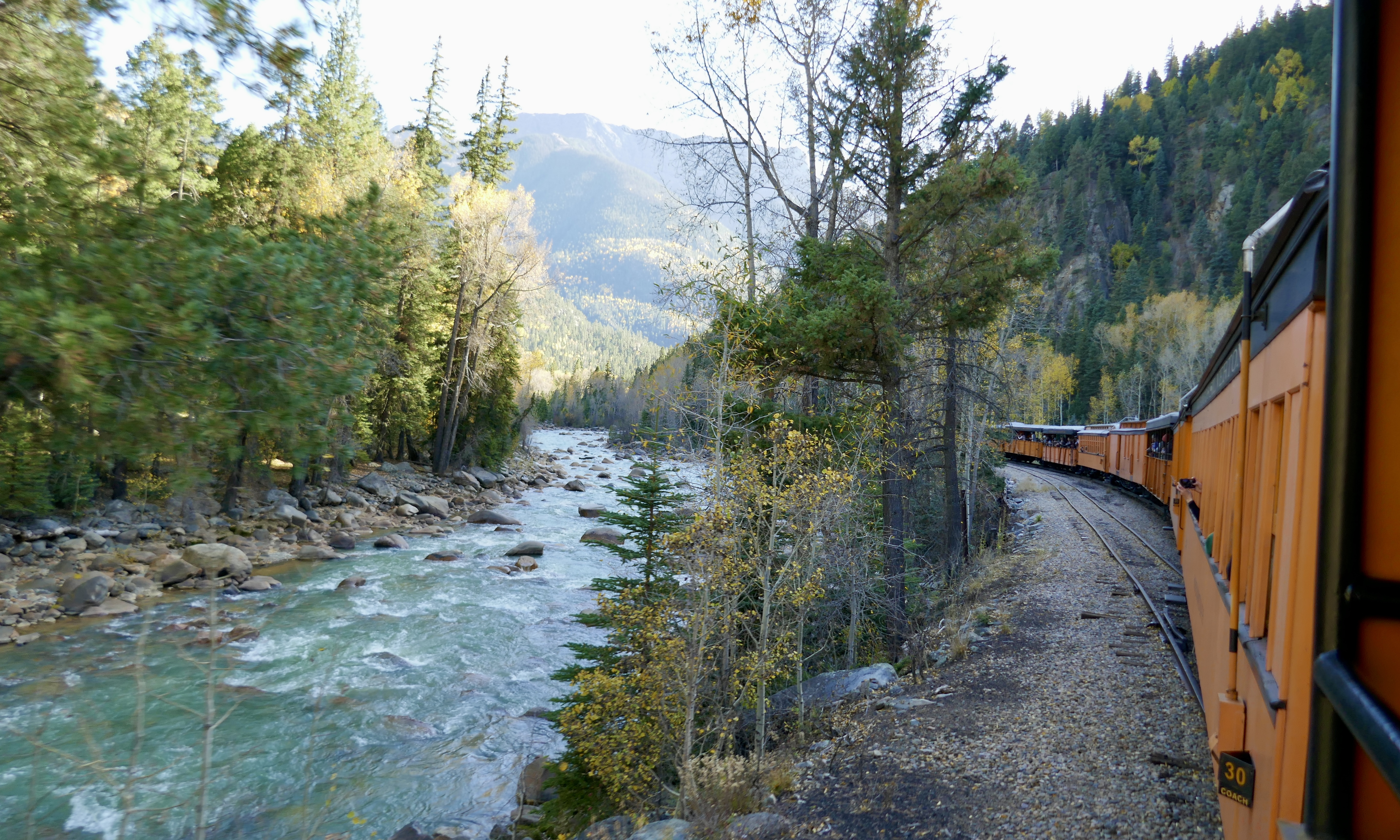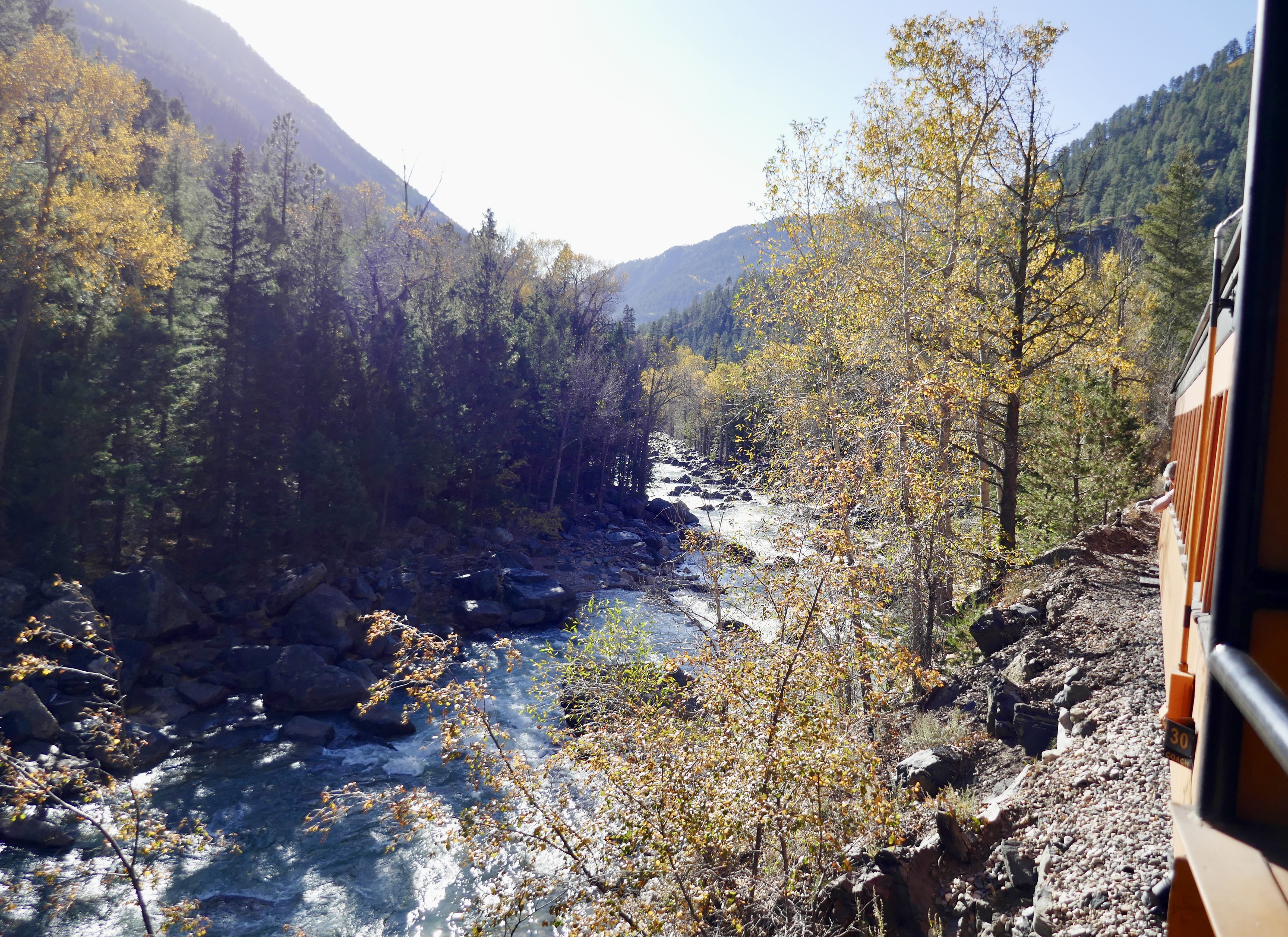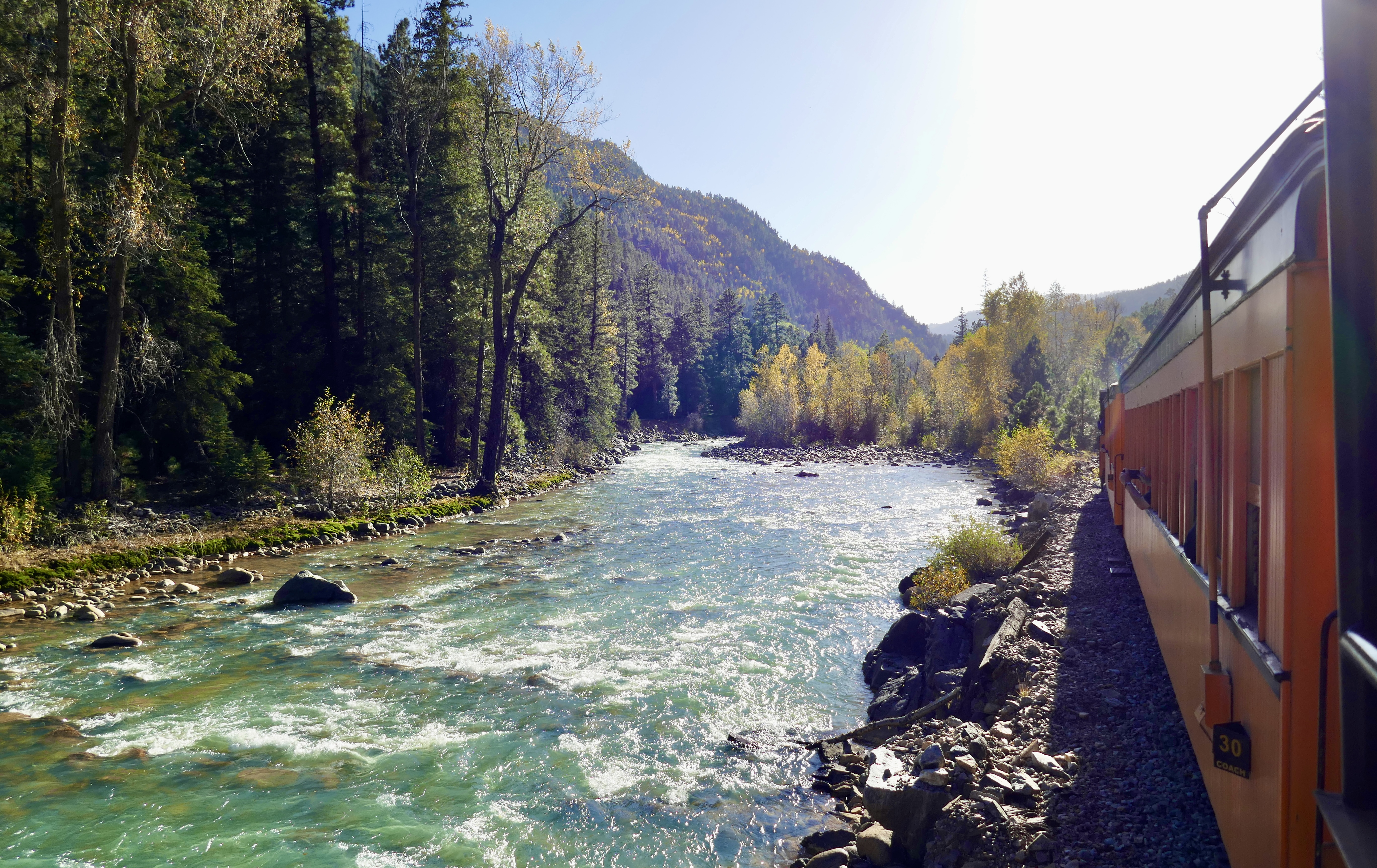 They called for boarding around 9:30 am. We found our reserved seats and the train departed at 9:45, following the Animas River north. The views are soul-nourishing.