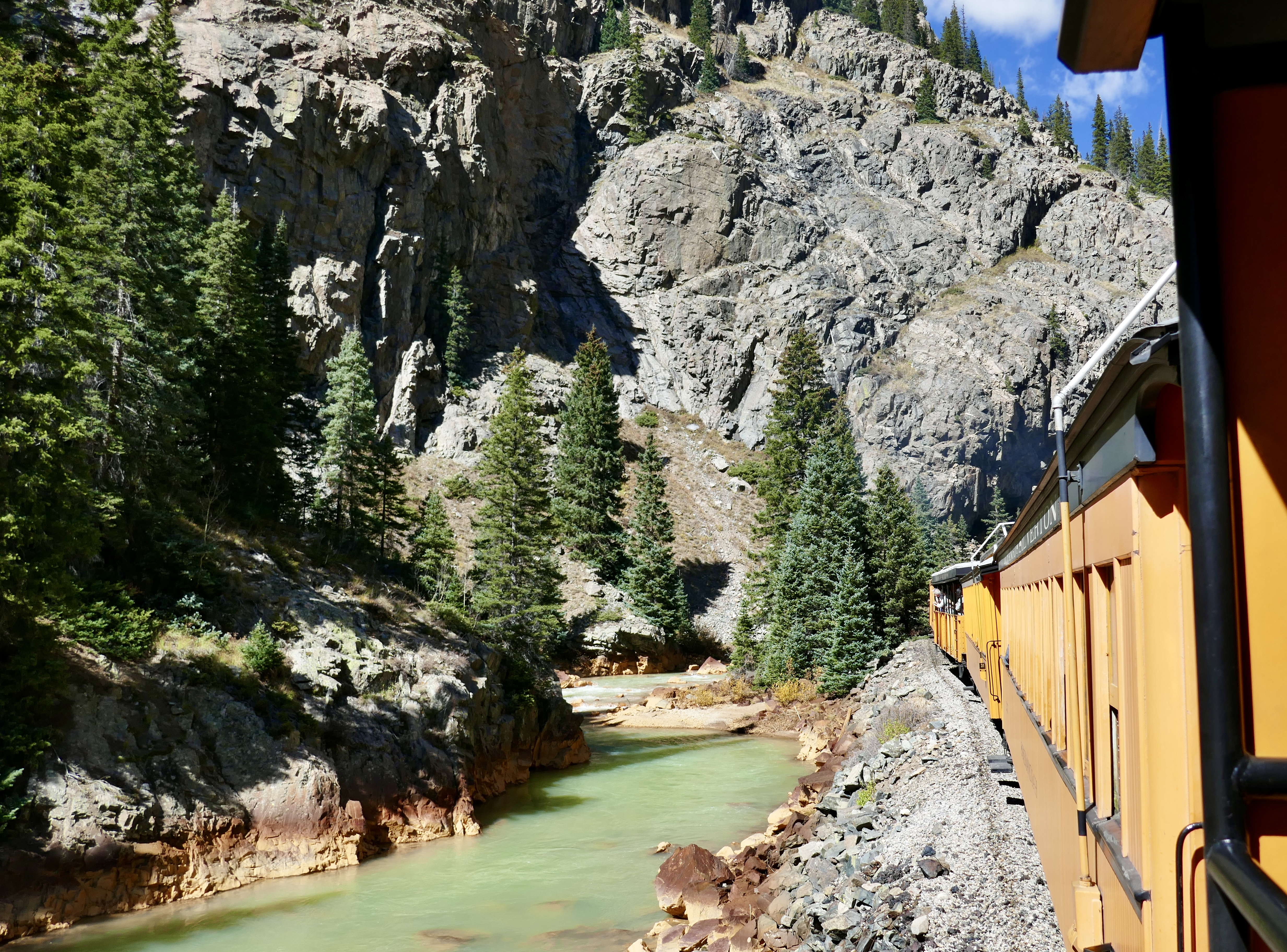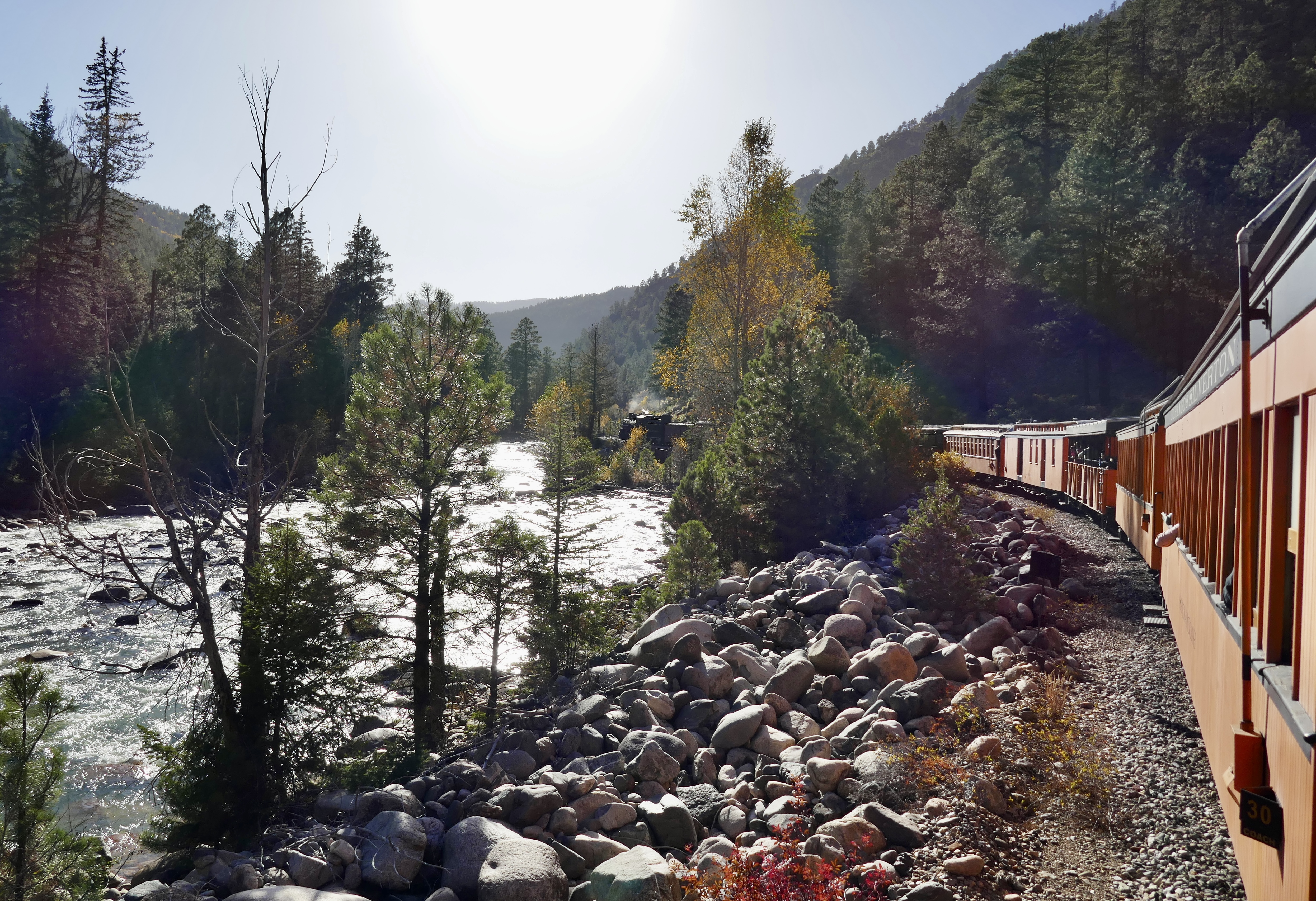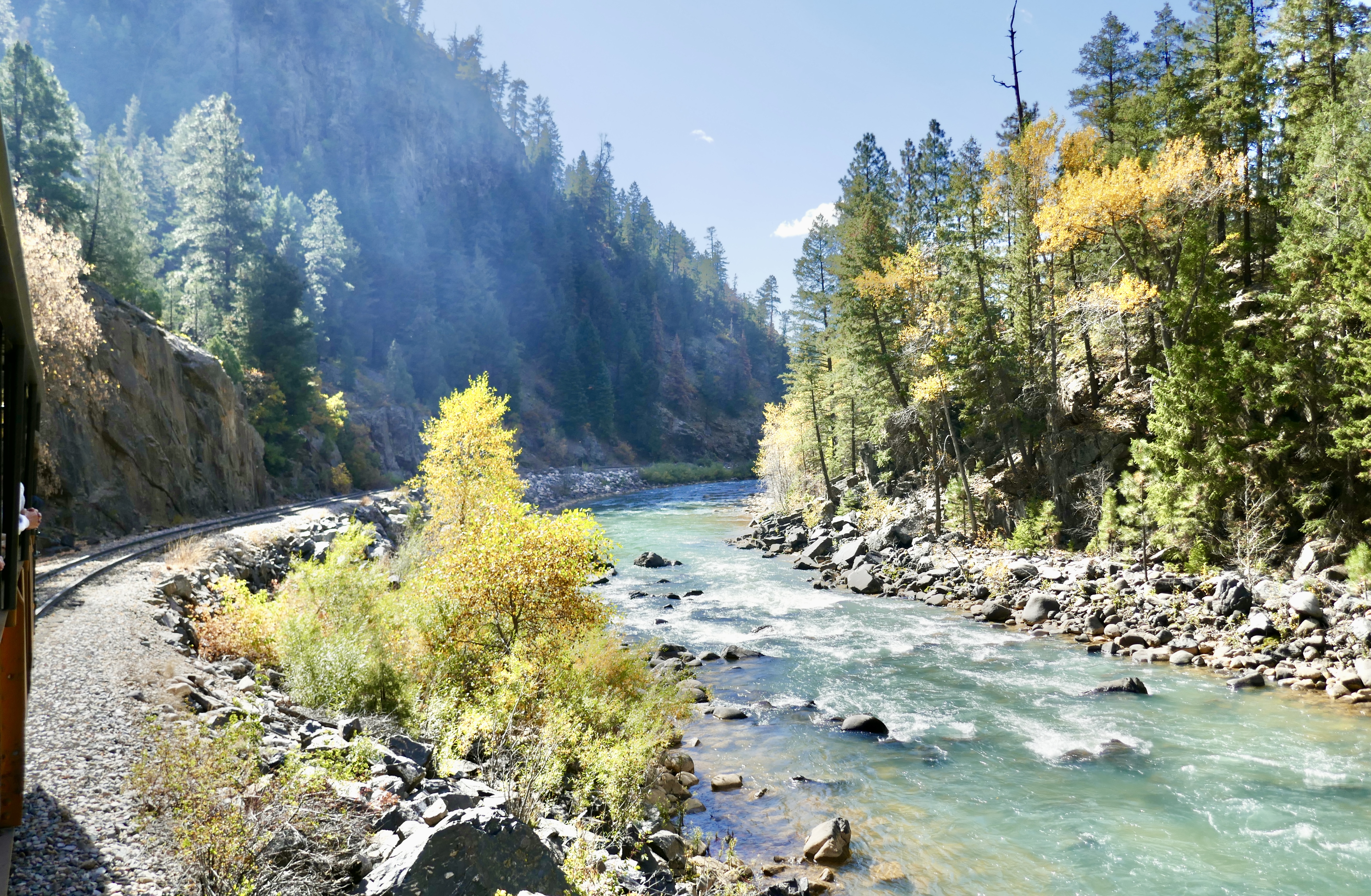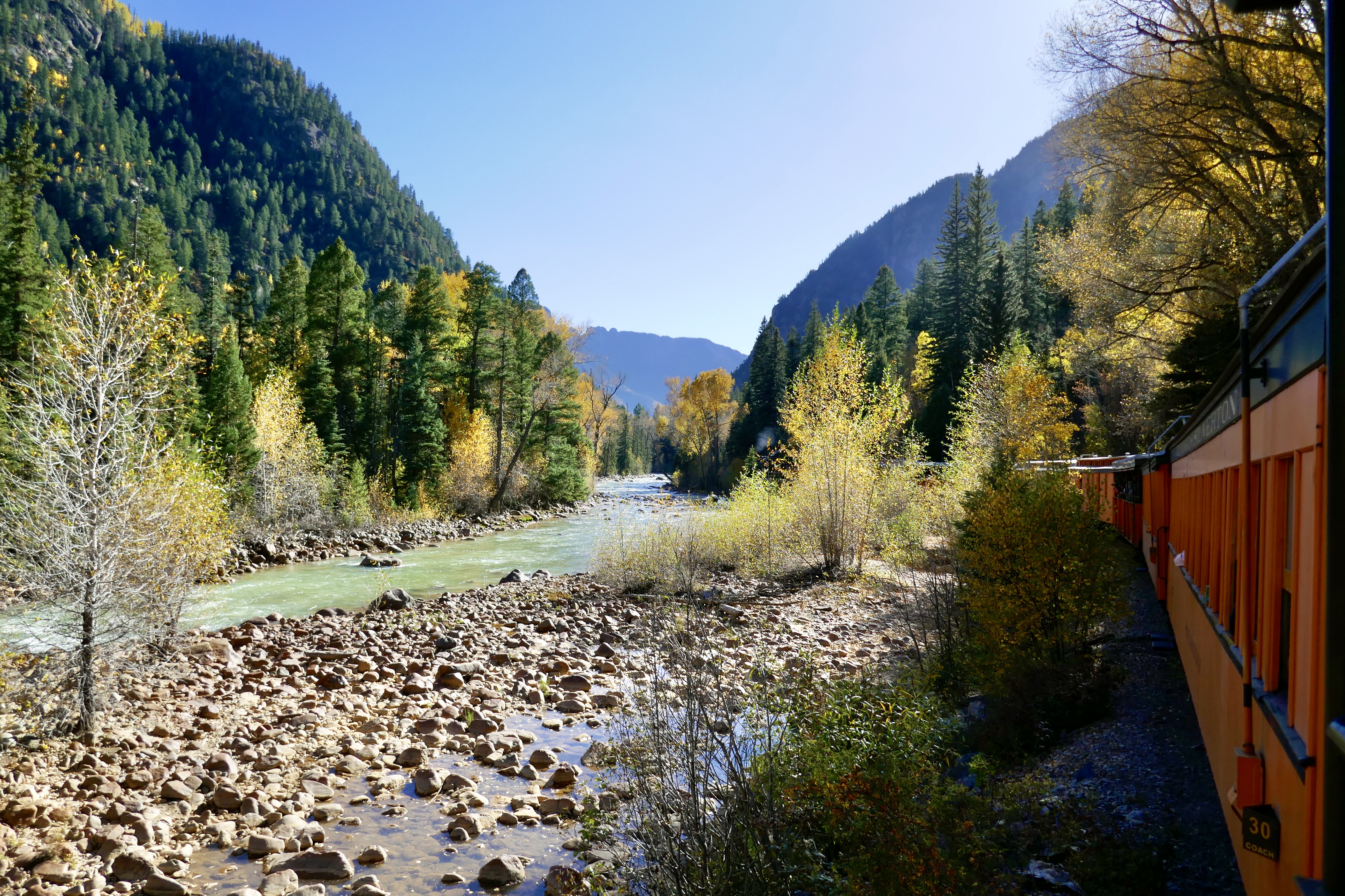 They called for boarding around 9:30 am. We found our reserved seats and the train departed at 9:45, following the Animas River north. The views are soul-nourishing.