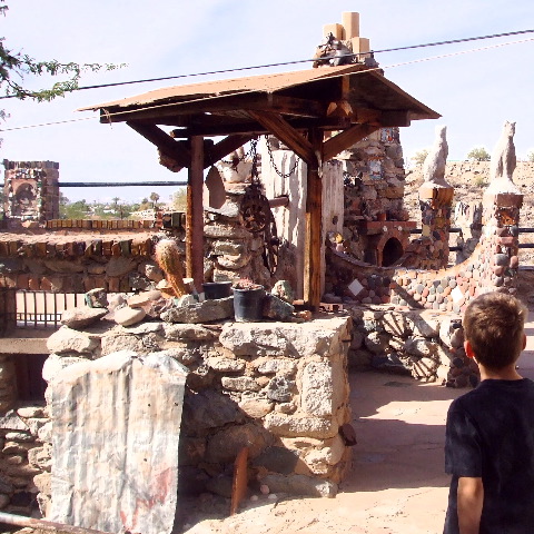 We’d planned to check out the Mystery Castle in Phoenix on the return trip, but with Elizabeth not feeling well I was prepared to skip it and just head straight home. This suggestion was met with dismay by both kids, though, so on to the castle we went!