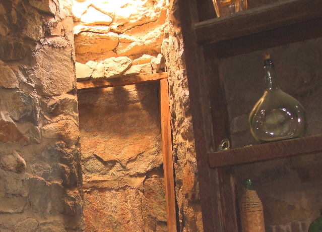 This is the bottom of a dumbwaiter shaft that comes down into the “tavern.” The top of the shaft looks like a wishing well on an upper courtyard. Pretty nifty design for keeping partygoers well-supplied: