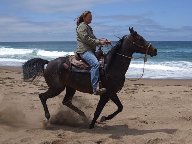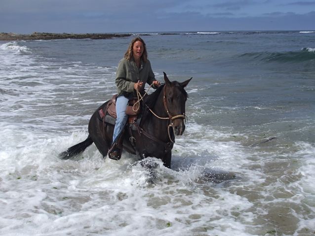 Aron — I didn’t think the water was all that cold. On Day 2 I tried to lead her out into the waves; the AIR was chilly, so by the end of that day I had blue lips and chattering teeth from riding around with wet boots and jeans on, but the water hadn’t struck me as being very cold when I was in it. Mahogany’s just always been afraid of walking into water. It’s a common Arab trait; Stormy was the same way for years.