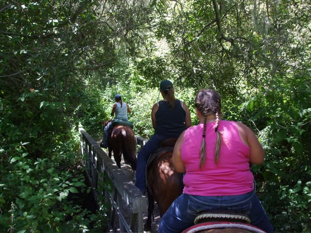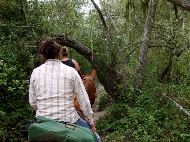 Day four was full of firsts, actually. She willingly crossed a creek about three times wider than the one she’d balked at before, without the slightest hesitation. I guess once you’ve been in the ocean those little babbling brooks aren’t quite so terrifying anymore. Then we rode a trail that took us over several long wooden footbridges, and amazingly Mahogany moseyed right onto and across them.