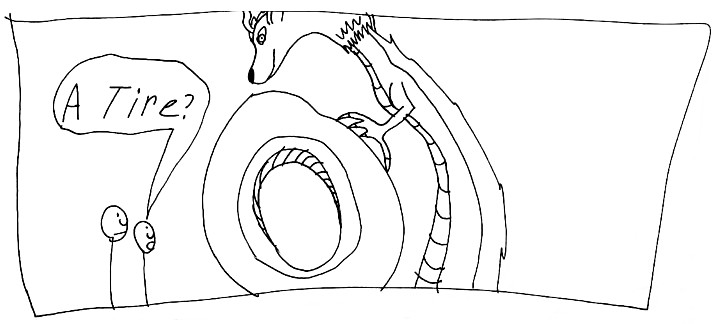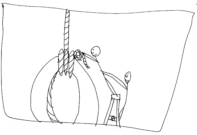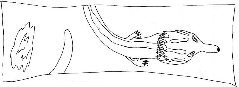 It’s interesting to me that in all of Elizabeth’s drawings, the people are depicted as nearly featureless stick figures while the animals are rendered in loving detail. Hmmmm….