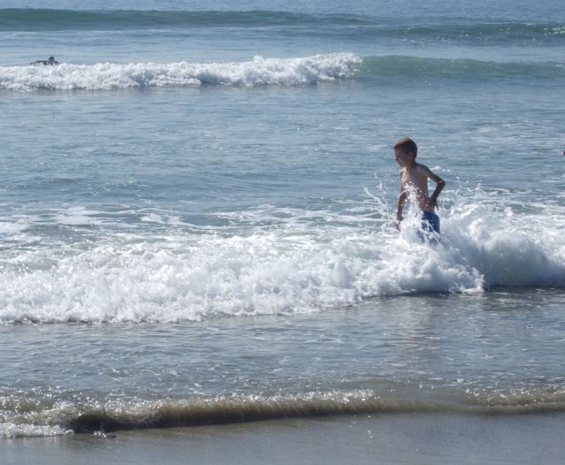 Ironically (or maybe “typically” is the word I’m looking for) it was Luke, not Elizabeth, who came home with the impression that the beach might be a dangerous place. At one point he borrowed a boogie-board from one of the other kids and it carried him a bit farther from shore than he was really comfortable with. So beach=dangerous. Elizabeth? Can’t wait to go back.