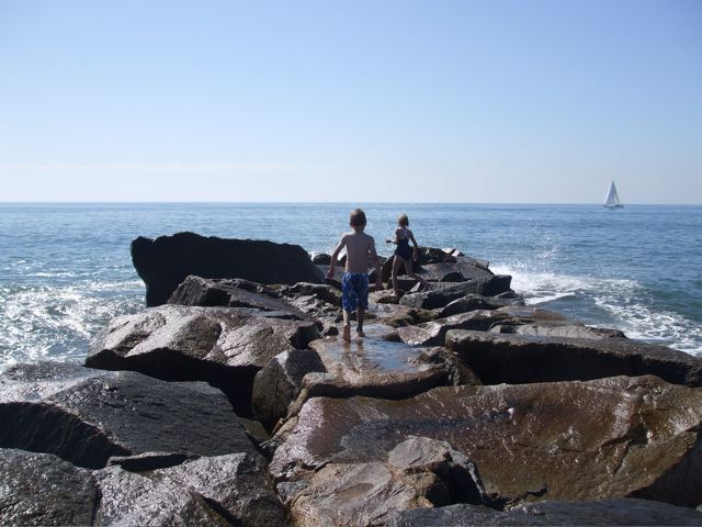 Around 1:00 Luke, Elizabeth and I walked down the beach to investigate one of the breakwaters that stretch like long thin rocky fingers from the sand into the sea.