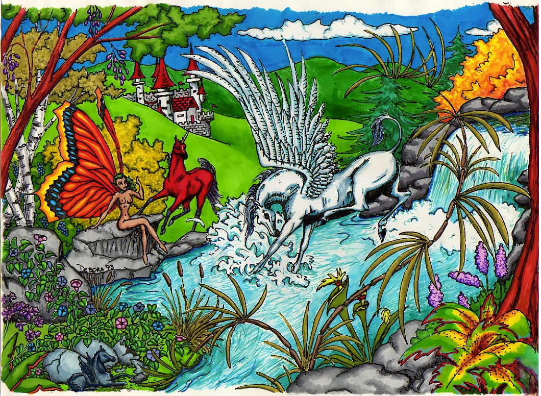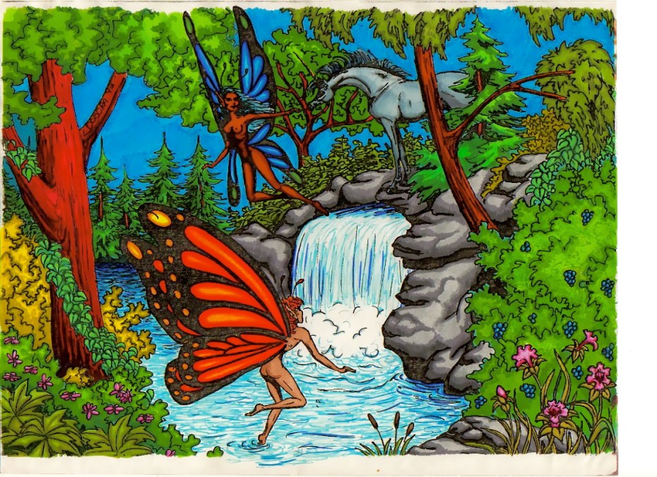 I’m not sure why all my wee folk were nekkid, but I suspect that it was a subconscious response to the soul-crushing repressiveness of my home life. You know, I couldn’t do anything about the situation I was trapped in (or I thought I couldn’t, which amounted to the same thing), but by golly my faeries were going to frolic unfettered by any constraints at all!