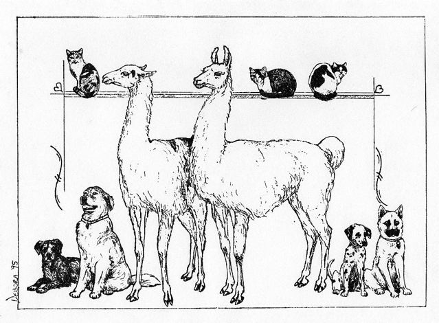 It was the first commissioned-and-paid-for picture I’d done since I’d moved to Anza. A couple I occasionally house-sat for wanted their pets immortalized in pen and ink. I felt like my True Calling was finally getting back on track!