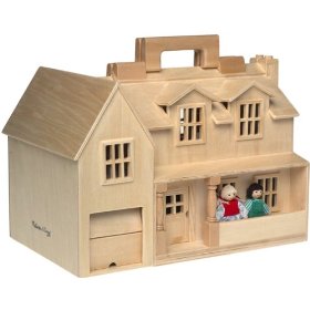 I like the ‘Hey we can put it back in the box’ bit with Lincoln Logs. You could always ask someone…or if you have the tools to make a basic house shape…add some floors and then let him go to twon with paints to make it his own. Like a cross section of a house. Thinking of doing it for Lily and then attaching it to the wall. When she outgrows the Dollhouse bit I’ll repaint it and poof! shelves for books 😉