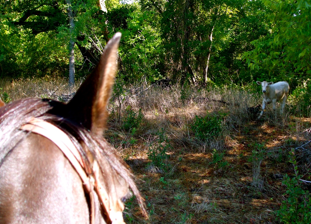 This morning Mahogany and I took our first trail ride since she arrived here. She has always had a strong preference for the company of other horses, but it was never a huge issue until this morning when I tried to ride her away from her new pasture mates. I had an honest-to-goodness fight on my hands. I finally opted to dismount and lead her off to the trailhead and out of sight of the herd and stables. This basically just relocated the fight instead of ending it, but at least it was just the two of us there with no human or equine witnesses to the struggle. Having a battle of wills with your horse in front of curious onlookers is like dealing with a tantruming toddler in a grocery store…it’s just awkward no matter how you handle it.