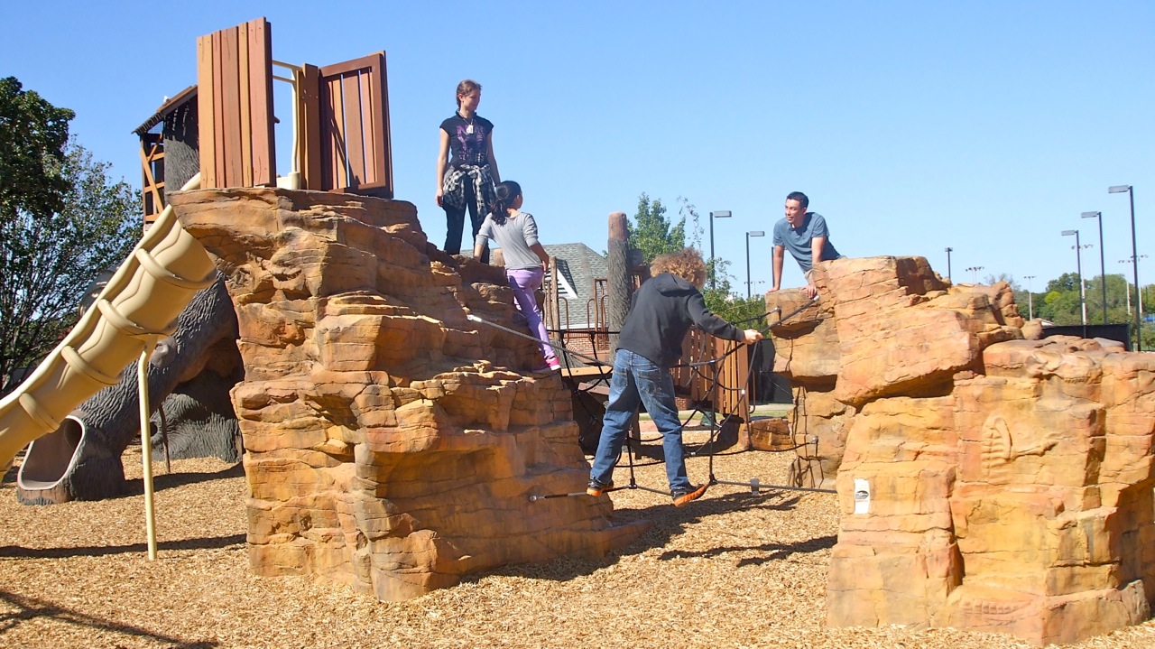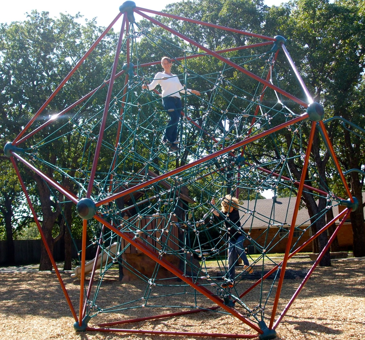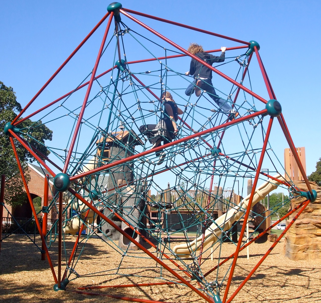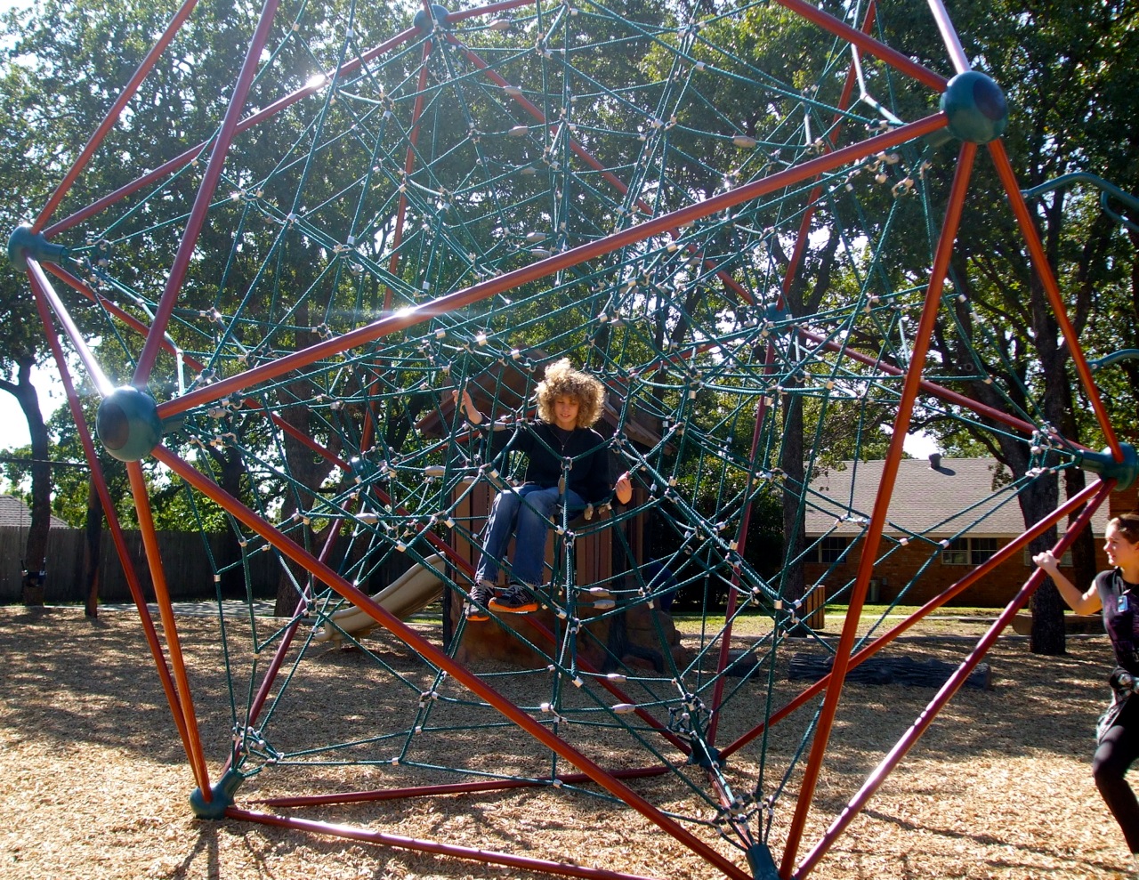 Then we found a park and explored that. It has a playground with this amazing thing like a giant spherical spiderweb. The kids and I reverted to age 12 and frolicked for a while.
