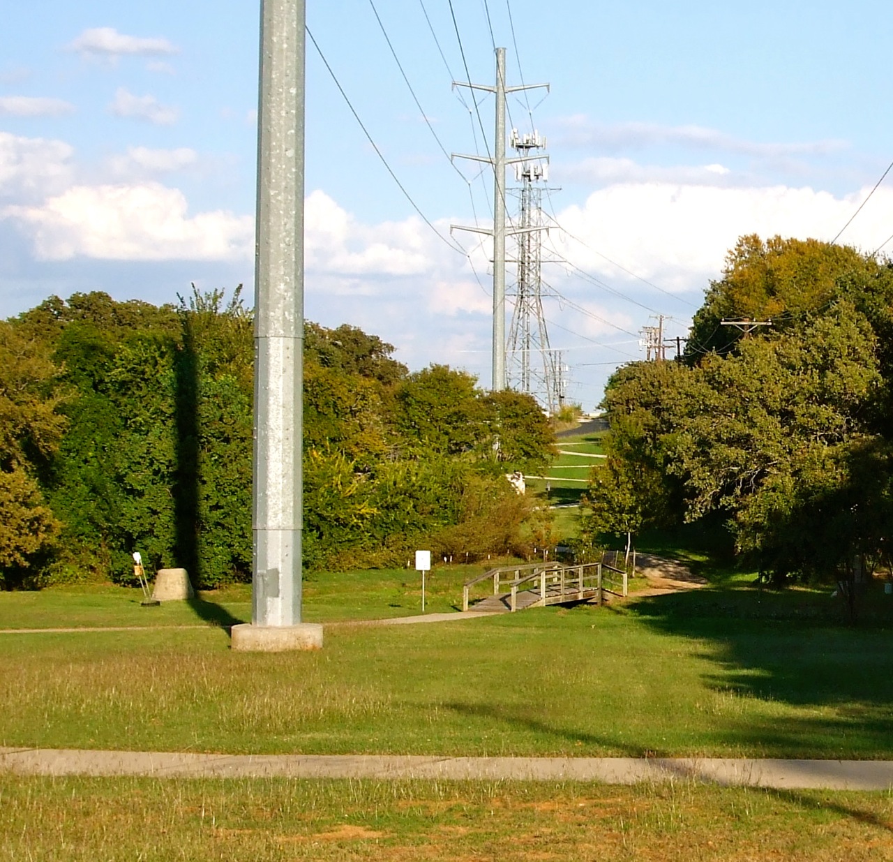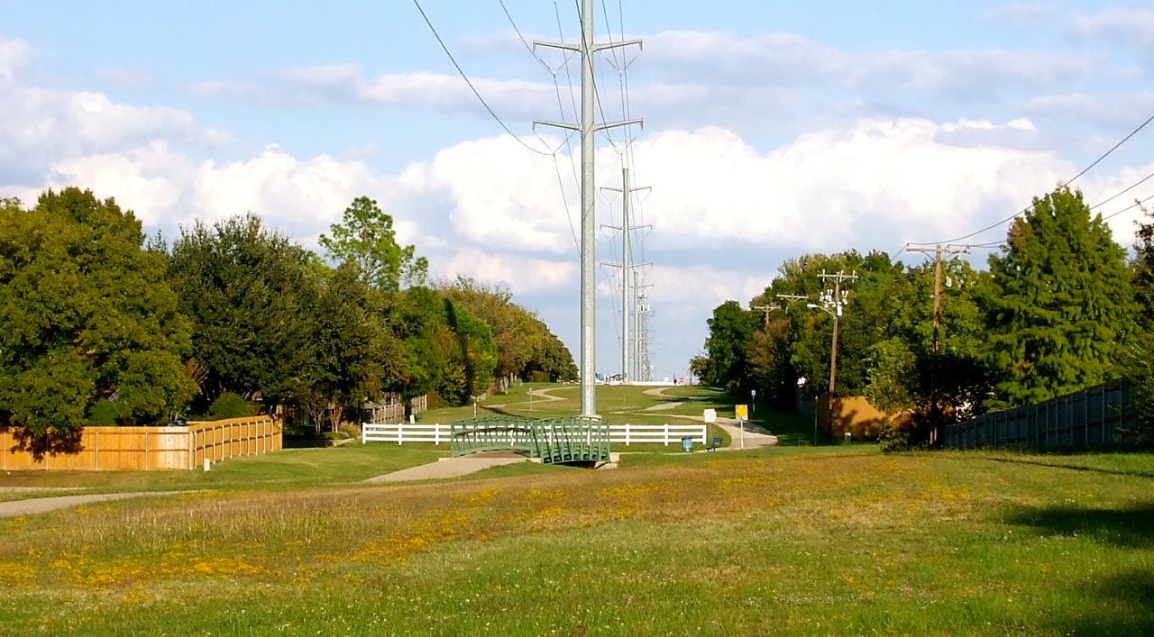 On yesterday’s walk I stumbled onto a dedicated system of walking and bike paths. I started out walking next to roads, but ended up on a trail that followed a line of massive power poles.