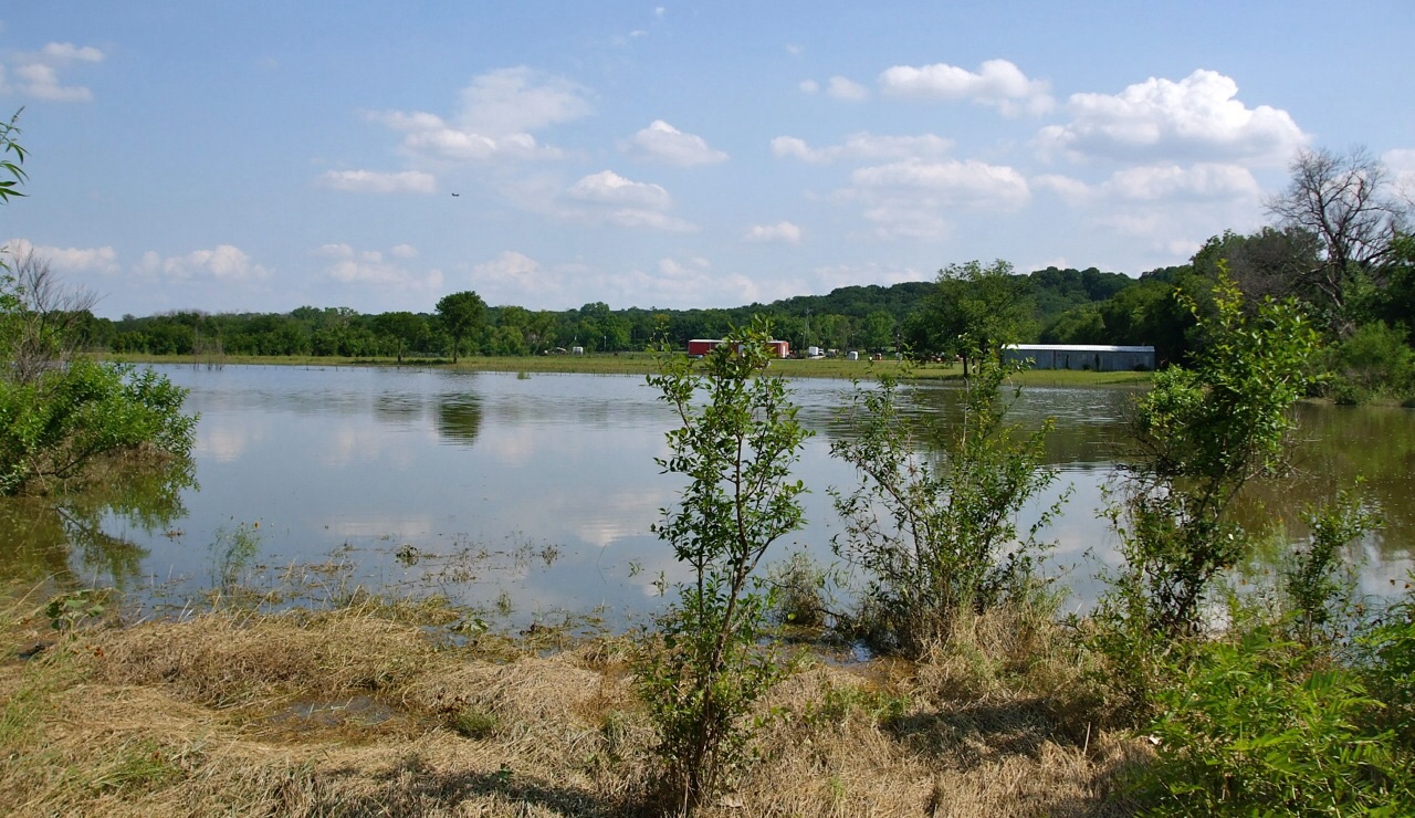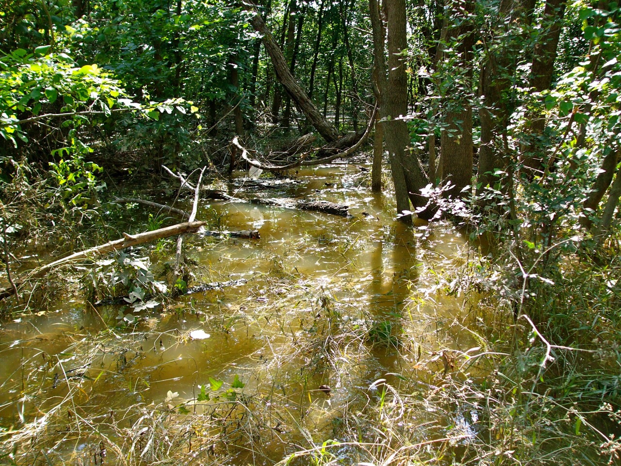 Then we crossed a nice stretch of high ground, and then we came to the woods and those were flooded too.