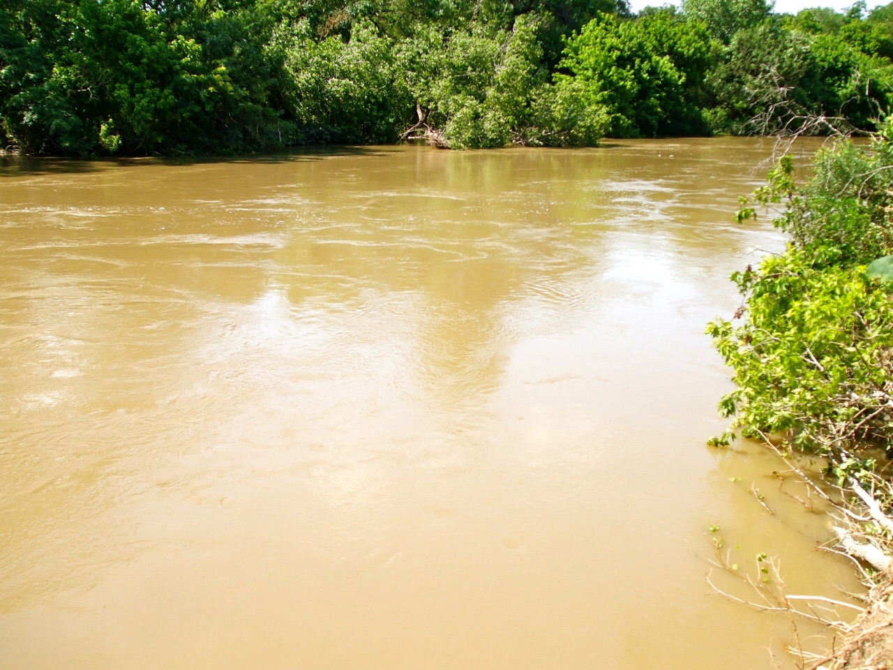 We decided to hike back to the Trinity River and see how full it was. Just getting to it turned out to be an adventure. A back pasture had become a lake, and we had to wade through one edge of it since it extended past the fence on both sides.