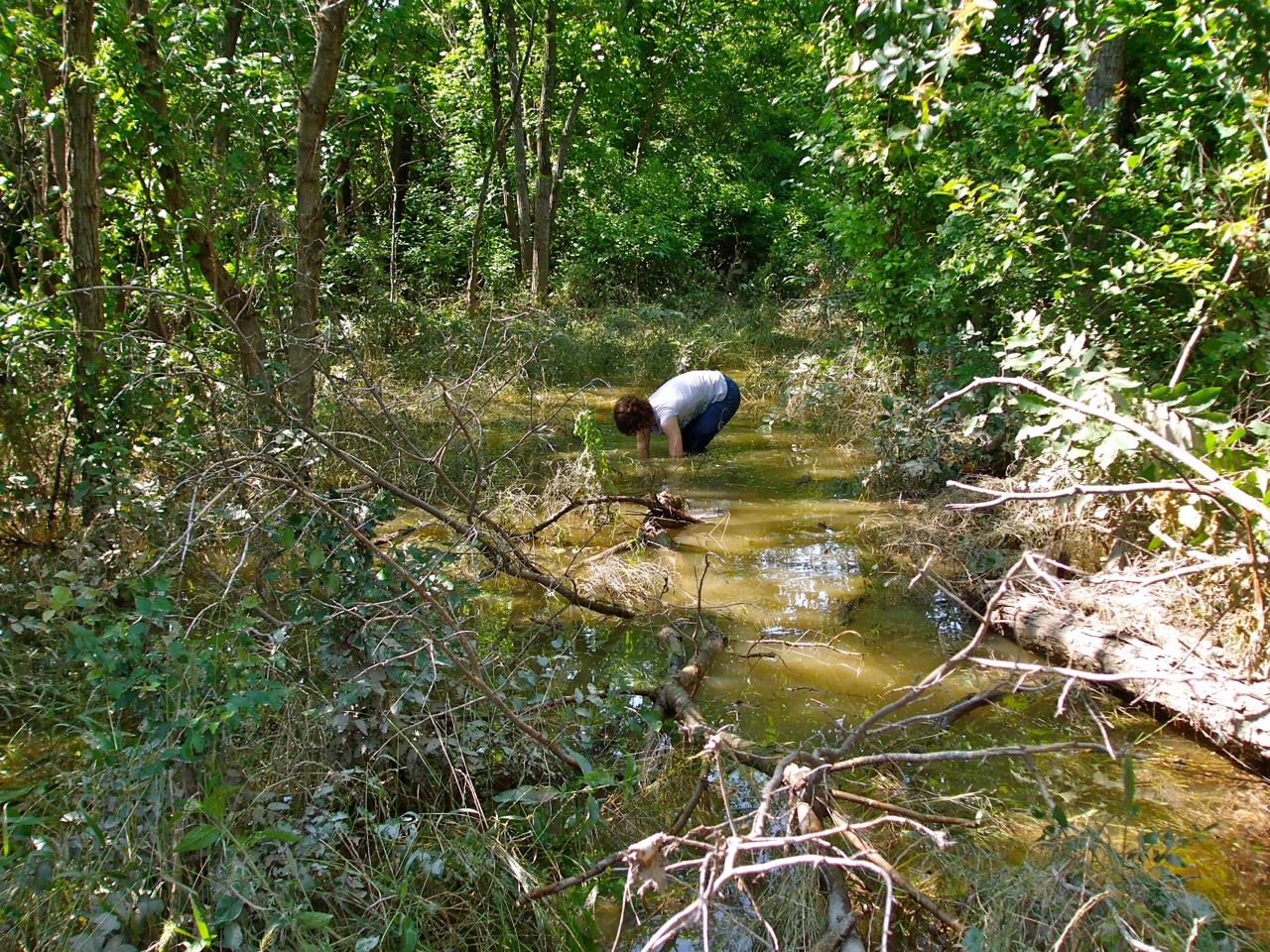 On the way back, Elizabeth dropped her phone in the flooded woods and then spent like ten panicky minutes dredging around for it in the murky water.
