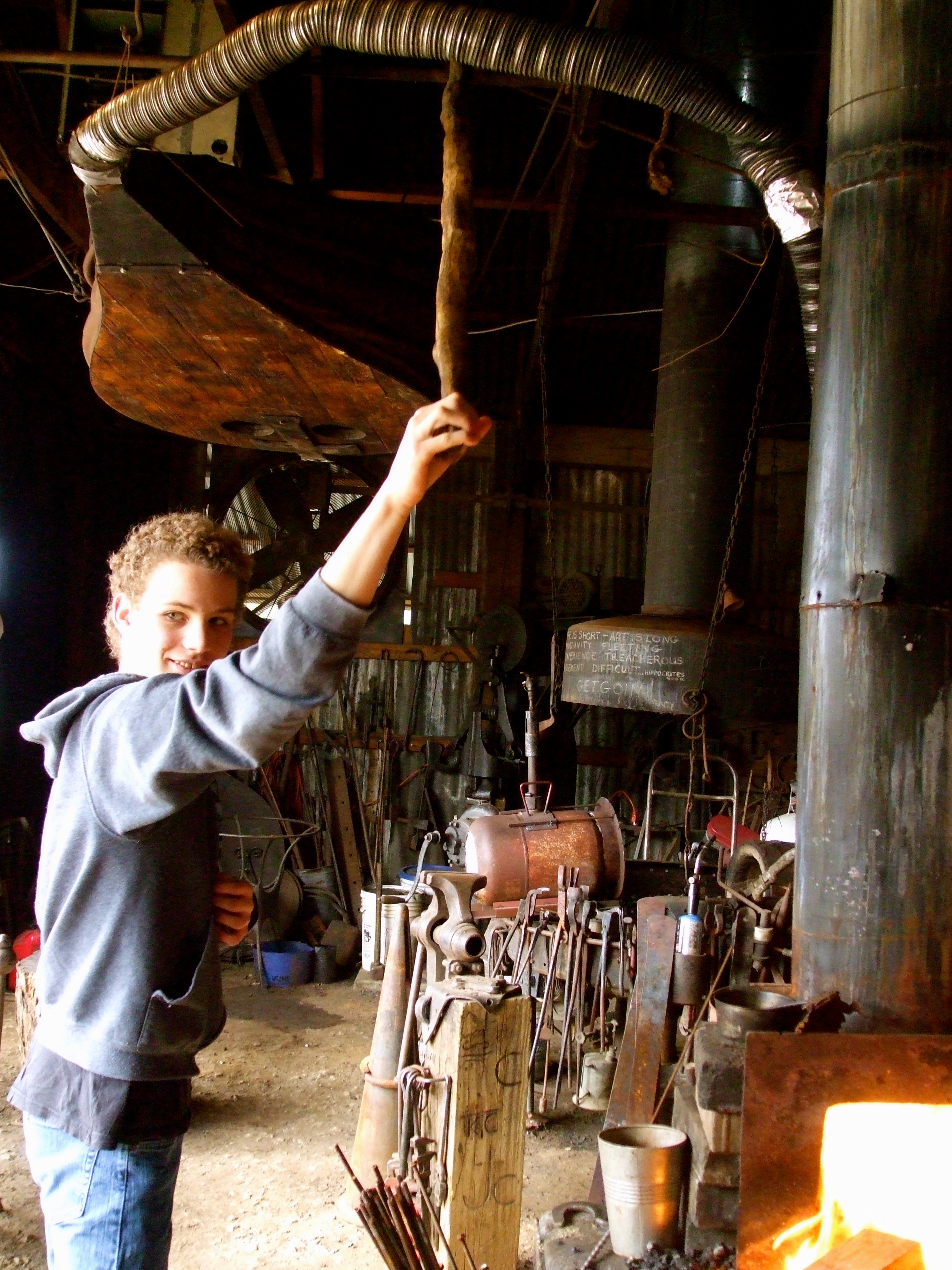 We stopped at the Blacksmith Shop, and Luke had fun pumping the bellows while the smithy did his thing at the forge.