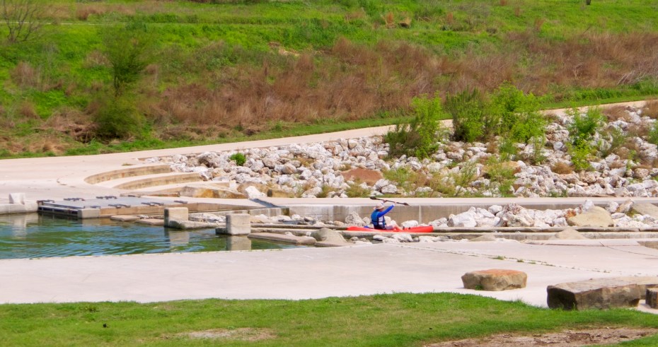 At least the view was nice. We got to watch kayaks going down a river chute from the shady comfort of our pavilion.