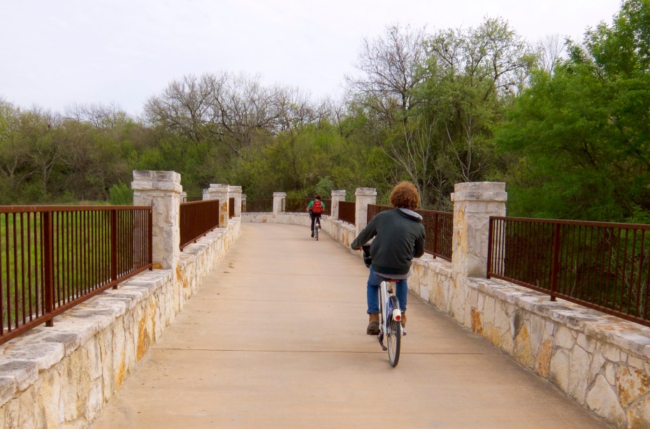 The last landmark on our Day Two checklist was the Hays St Bridge. It’s a pedestrian-only bridge, so we headed back to the Pearl Brewery to trade our car for some bikes. I love that they repurposed the old buildings without changing their names.