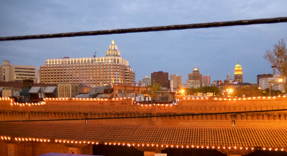 We left our bikes docked at the Mission Espada station and walked to the nearest bus stop. Here we got lucky: there’s a bus route that just goes back and forth between the missions and downtown. It took us about six hours to cover that distance by bicycle and maybe 35 minutes to get back by bus. Then another 10 or 15 minutes to walk from where we got off the bus back to the Blue Star. We could have waited for a connecting bus, but that would have taken longer.