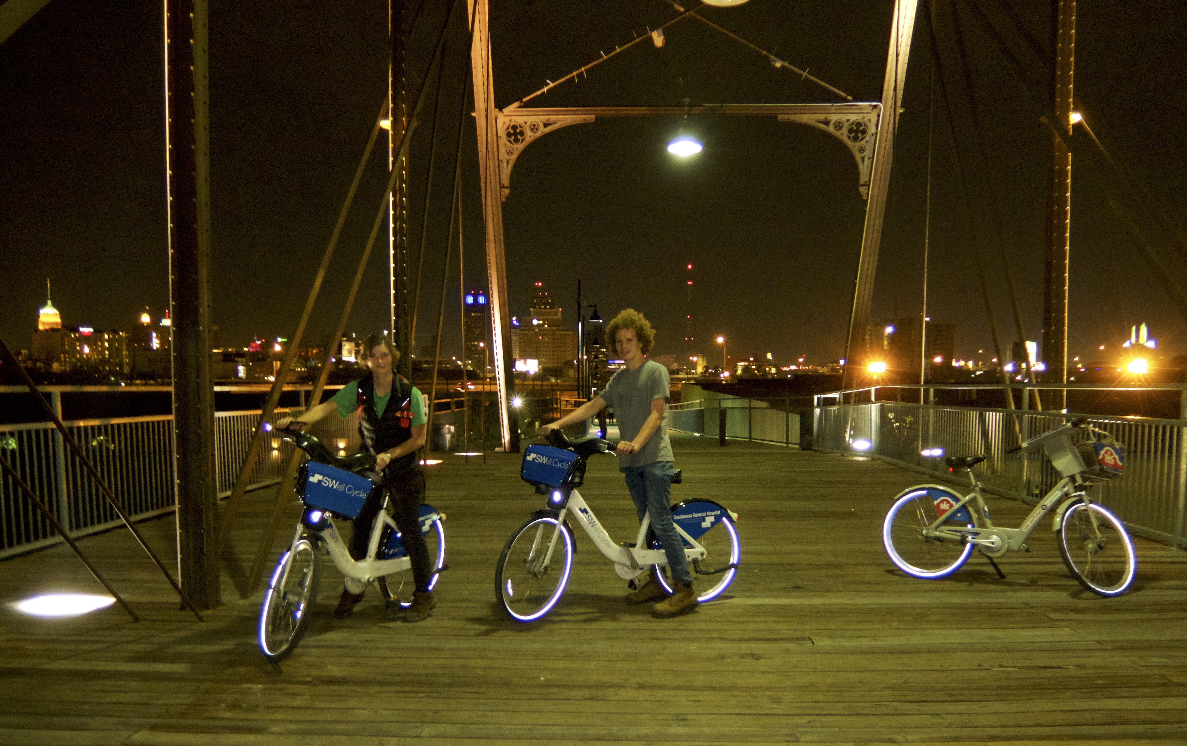 We parked at the Blue Star Arts Complex just south of downtown. I had already downloaded the B-Cycle app and prepaid a 24-hour pass for myself. We bought 24-hour passes for Luke and Elizabeth directly from the kiosk at the Blue Star’s B-Cycle station. The system is simple: each pass buys unlimited use of all B-Cycle bikes and stations for 24 hours, one bike at a time per pass. Each bike has to be docked at a station at least once per hour to avoid extra fees. You can also purchase monthly or yearly passes.
