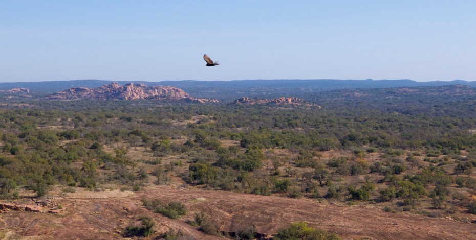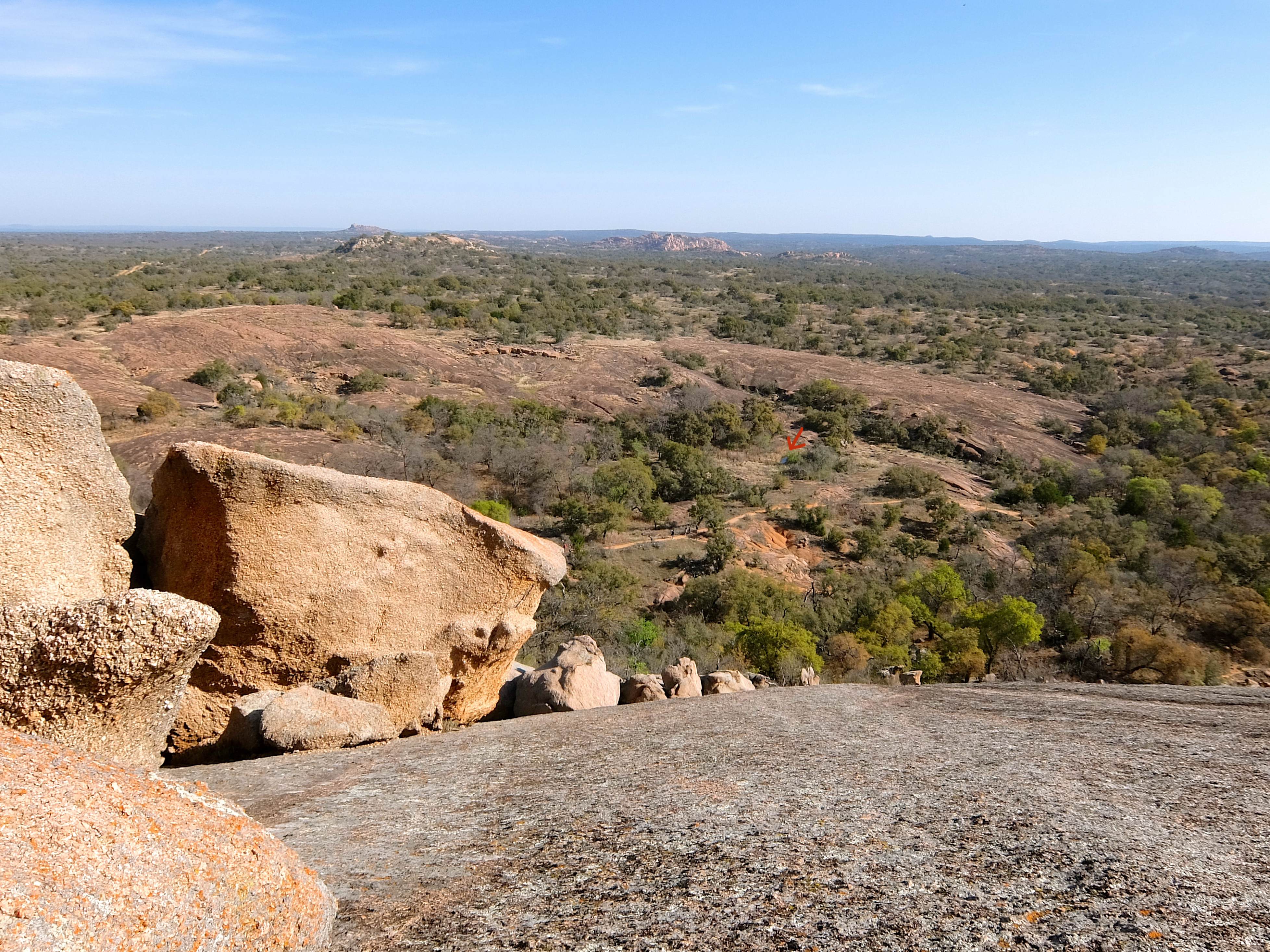 Enchanted Rock as seen from the driveway: basically a granite dome 425 feet high.