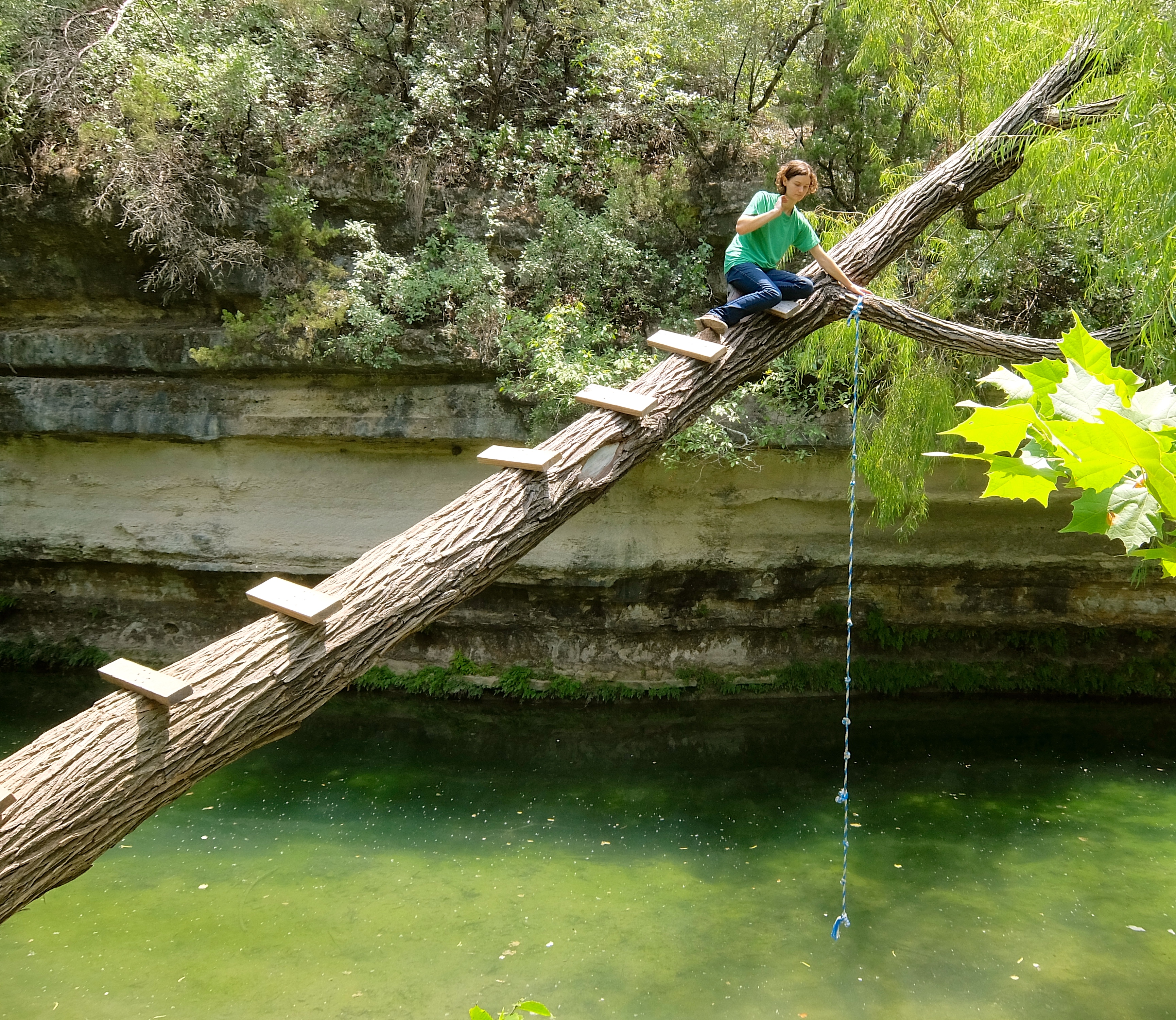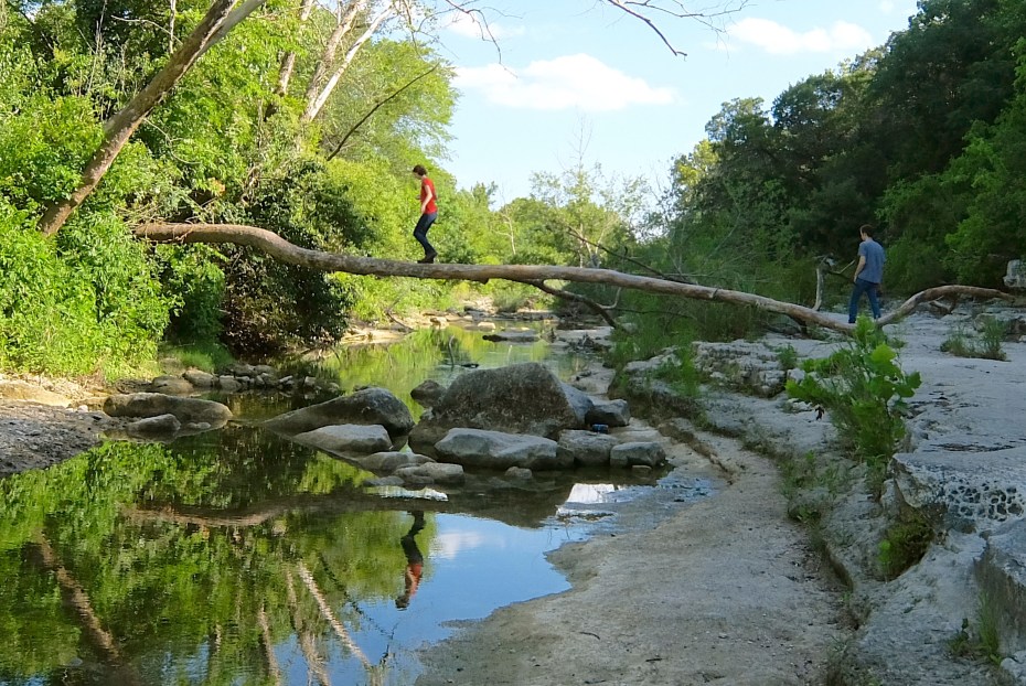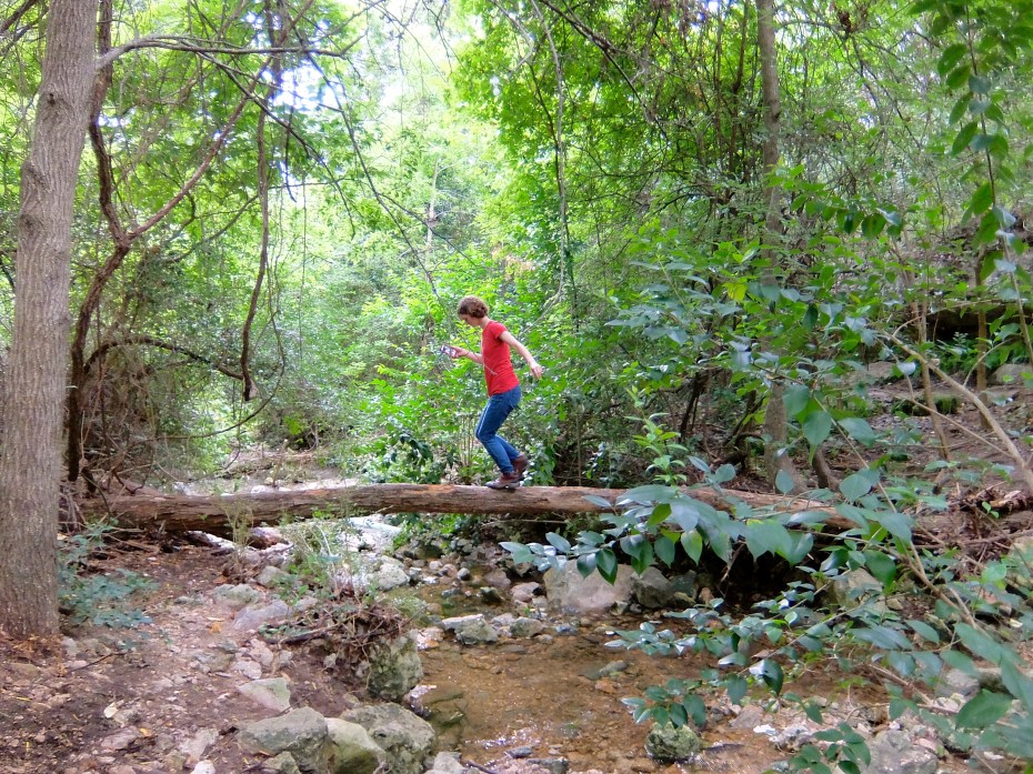 …and Elizabeth crossing creeks on logs. No log is too low or high or long or narrow or wobbly for her, she’s drawn to them like a cat to cardboard boxes.