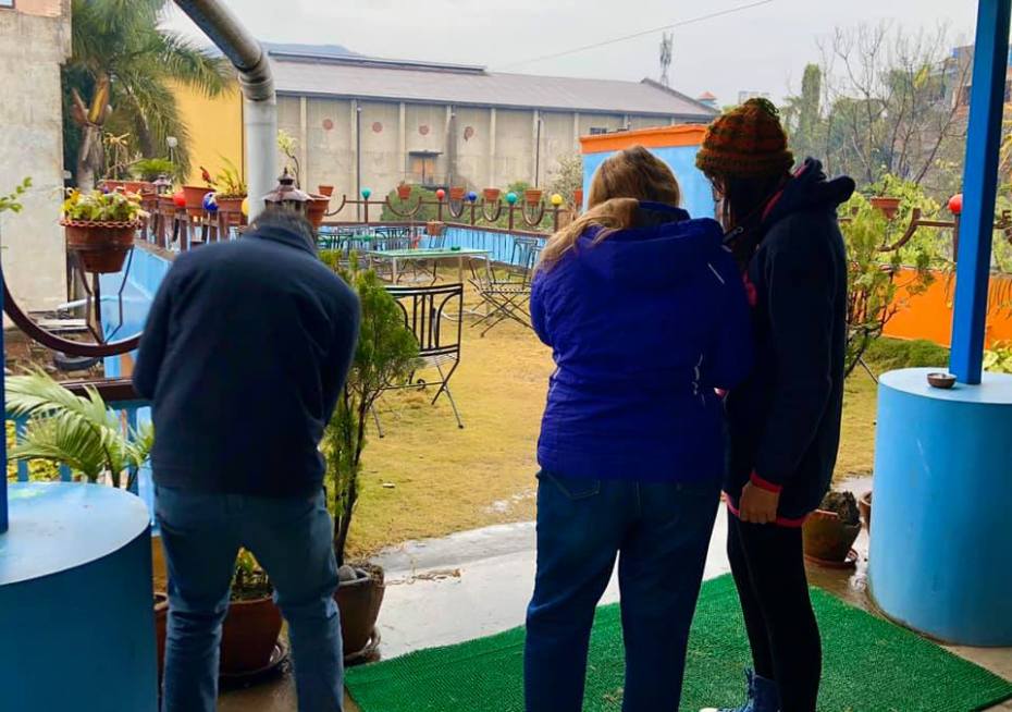 The next day was gray and rainy. (January 17th, if we’re keeping track.) Emma, Elizabeth and Bee Striit met the two Tibetan students at the hotel again for another photography class.