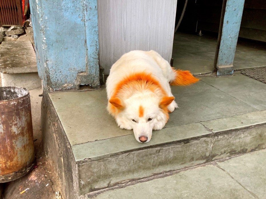 This handsome fellow is decorated for a local festival. We can’t find any info on what festival it was, but our best guess is that it was a local version of Kukur Tihar, the Day of the Dog.