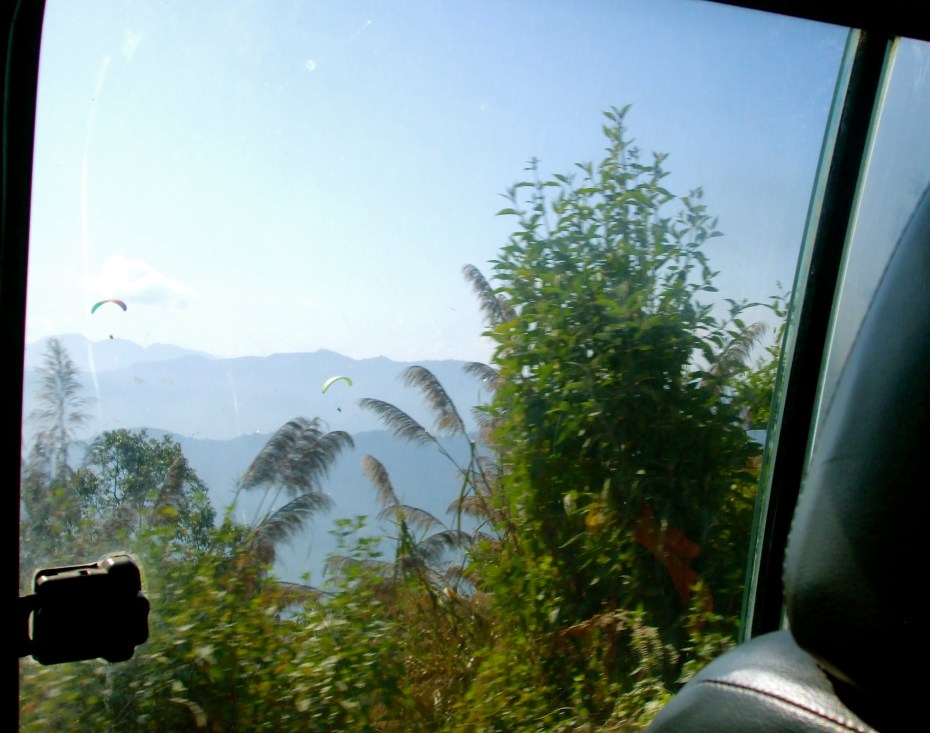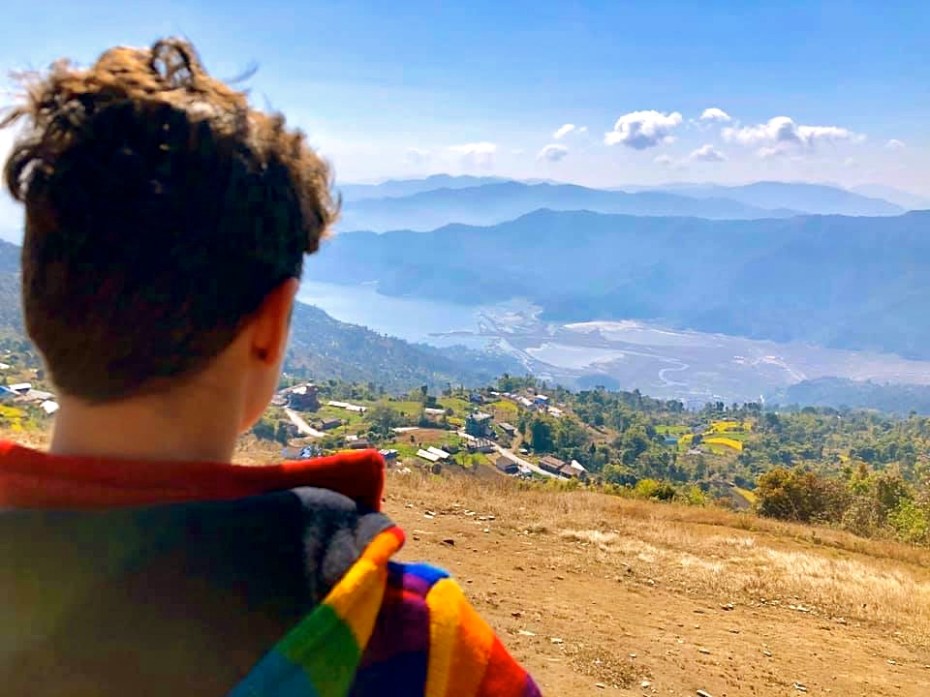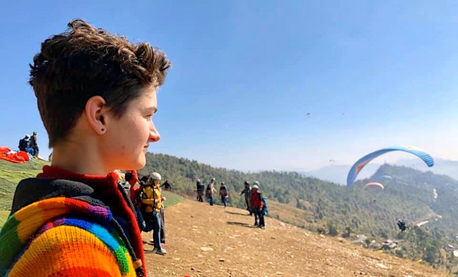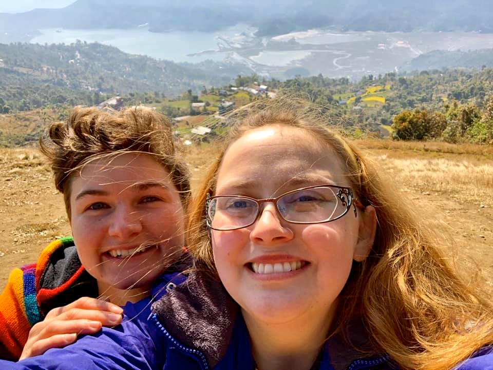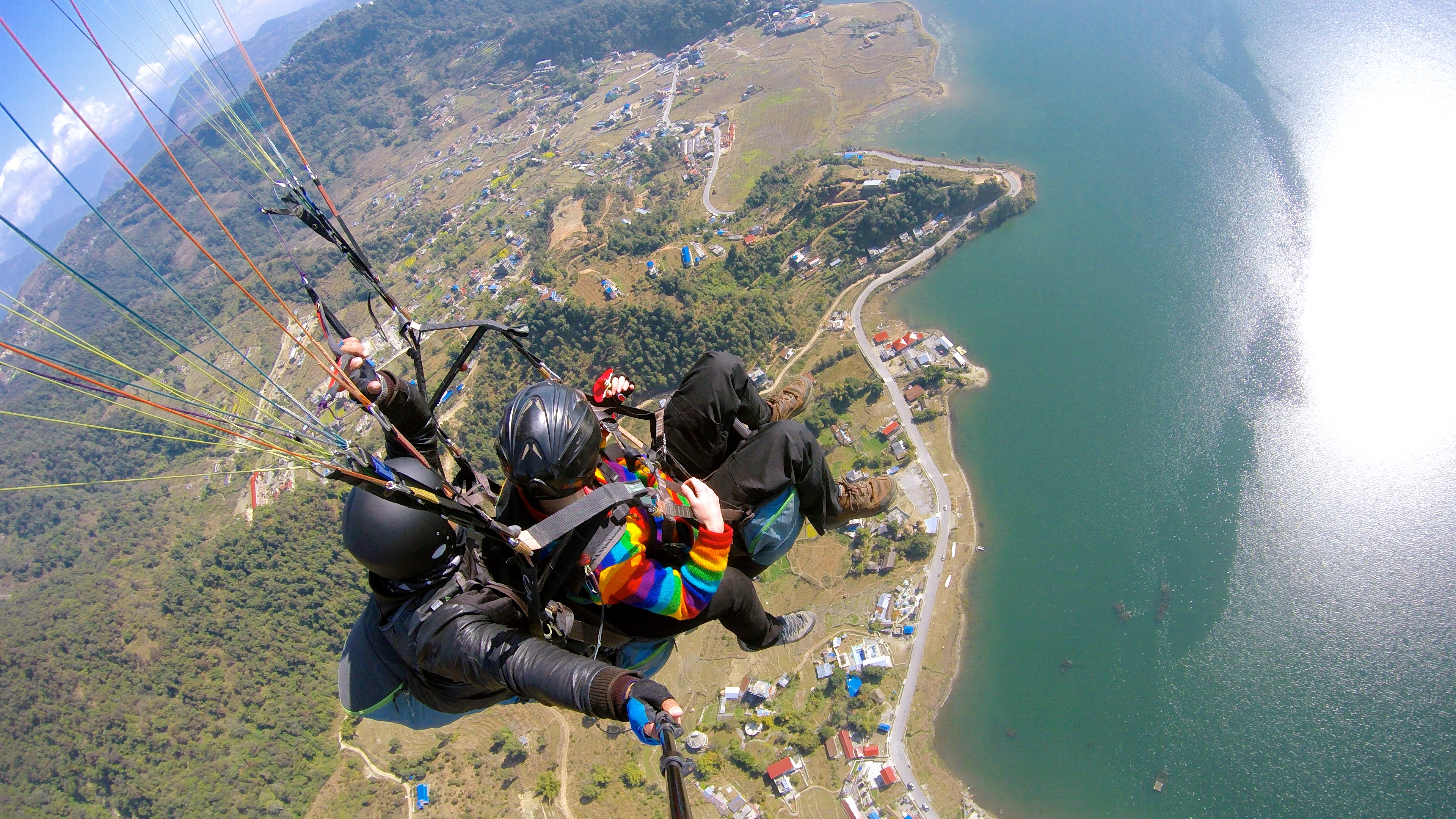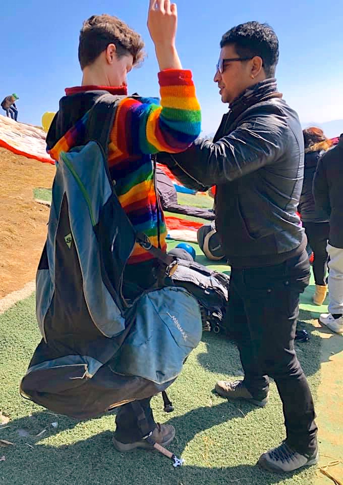 The next day, Emma and Elizabeth went paragliding over Phewa Tal.