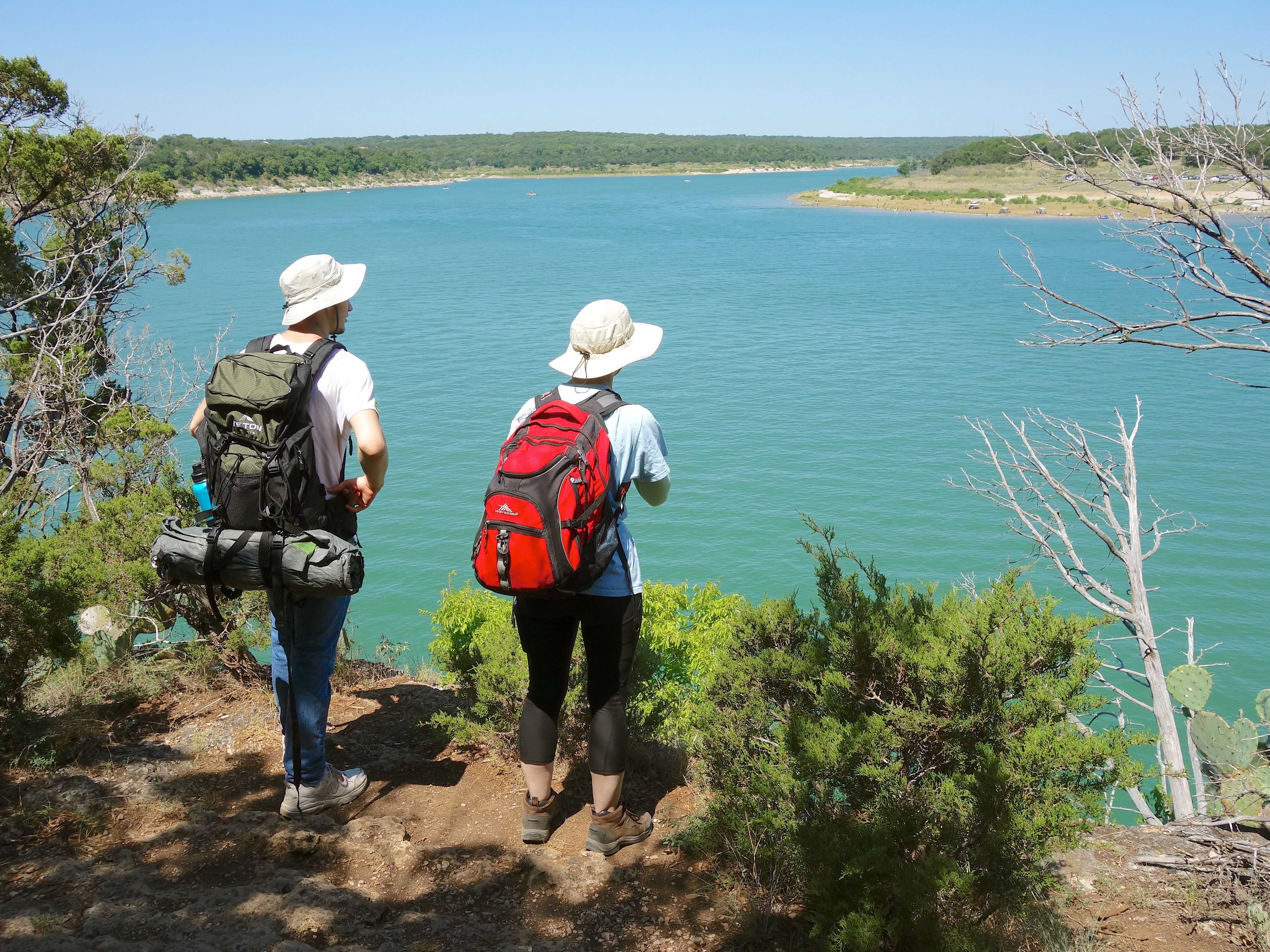 The plan was to leave the car at Overlook Park Saturday morning, hike 14 miles around the lake clockwise to Tejas Camp, spend the night there, and then continue around the lake back to the car.