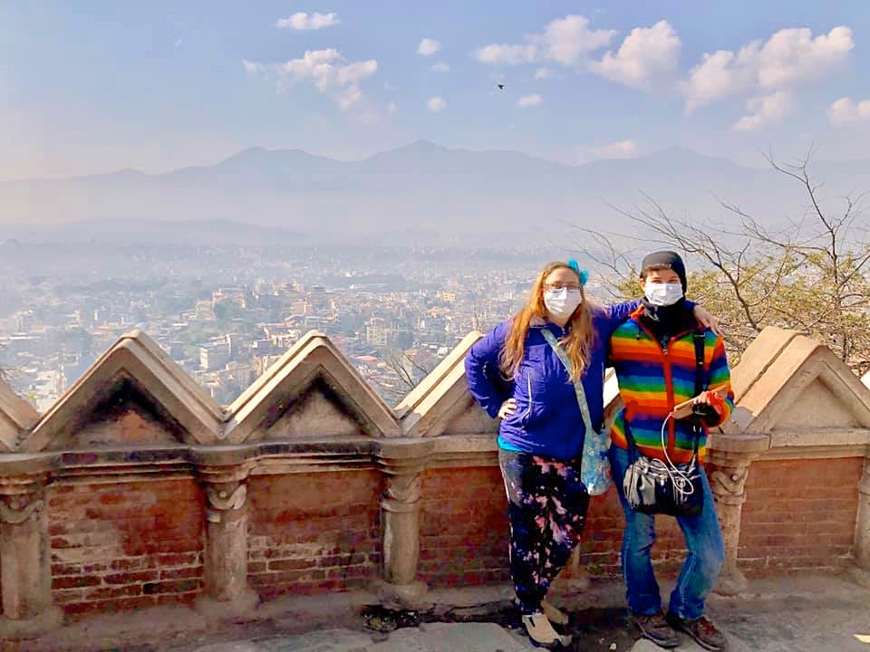 Overlooking smoggy Kathmandu: