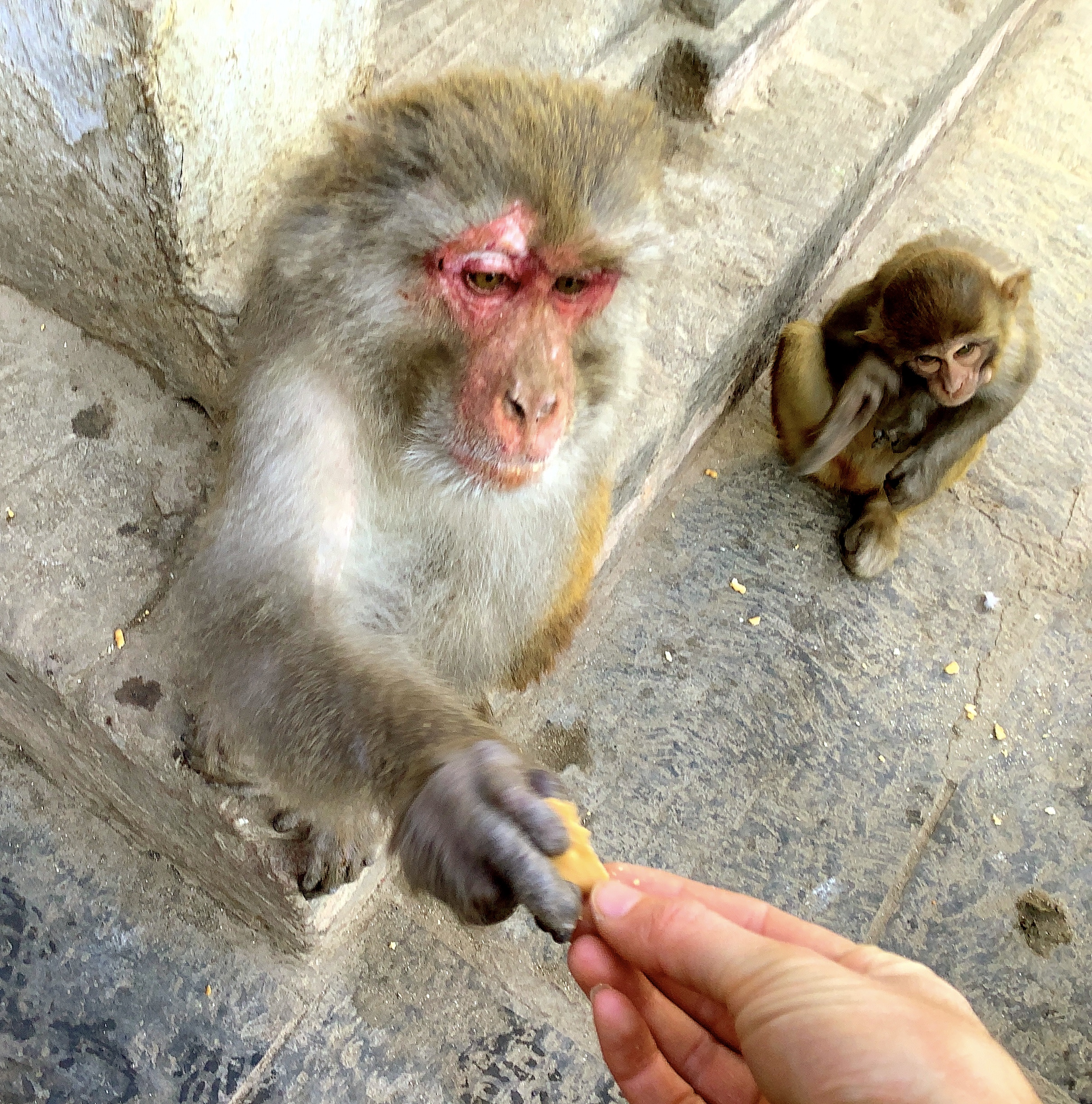 I am really surprised by the fact that the monkeys were comfortable when you took their photograph and even fed them. I still remeber my vain attempt to click a photo of the baby monkey I saw in Nainital. It was awful when I had to escape form their because the baby’s parents were very offended. Lol !