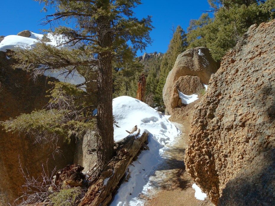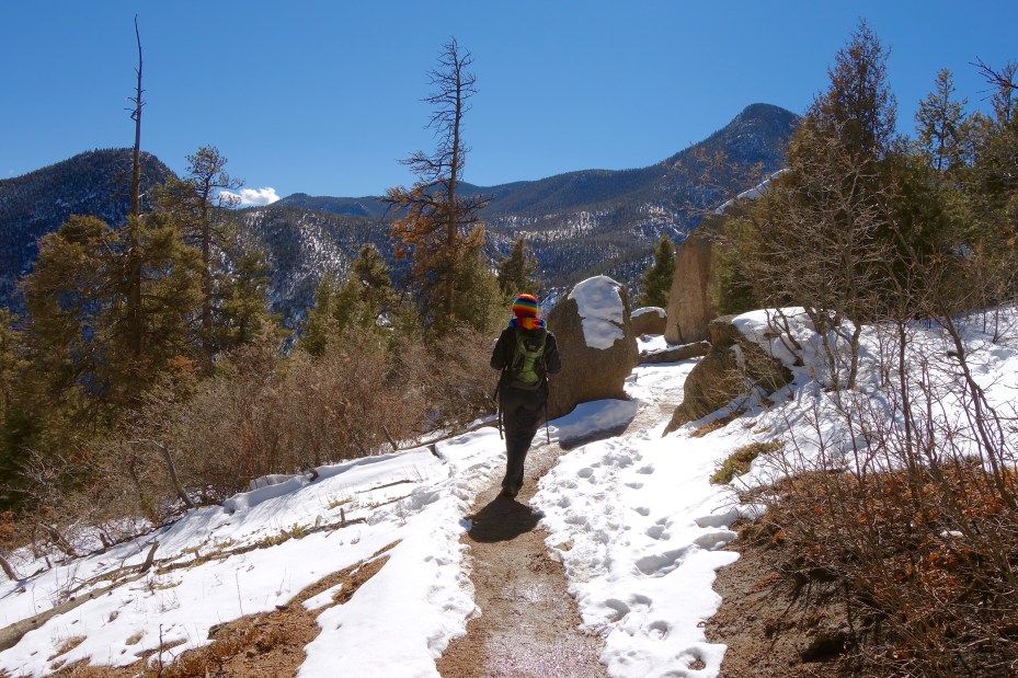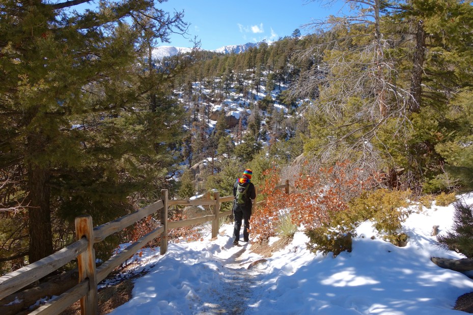 This is another connection to Barr Trail. From the top of the Incline to Base Camp via the trail is almost three miles, but you travel a lot faster going down than coming up. It’s a gorgeous trail even in midwinter.