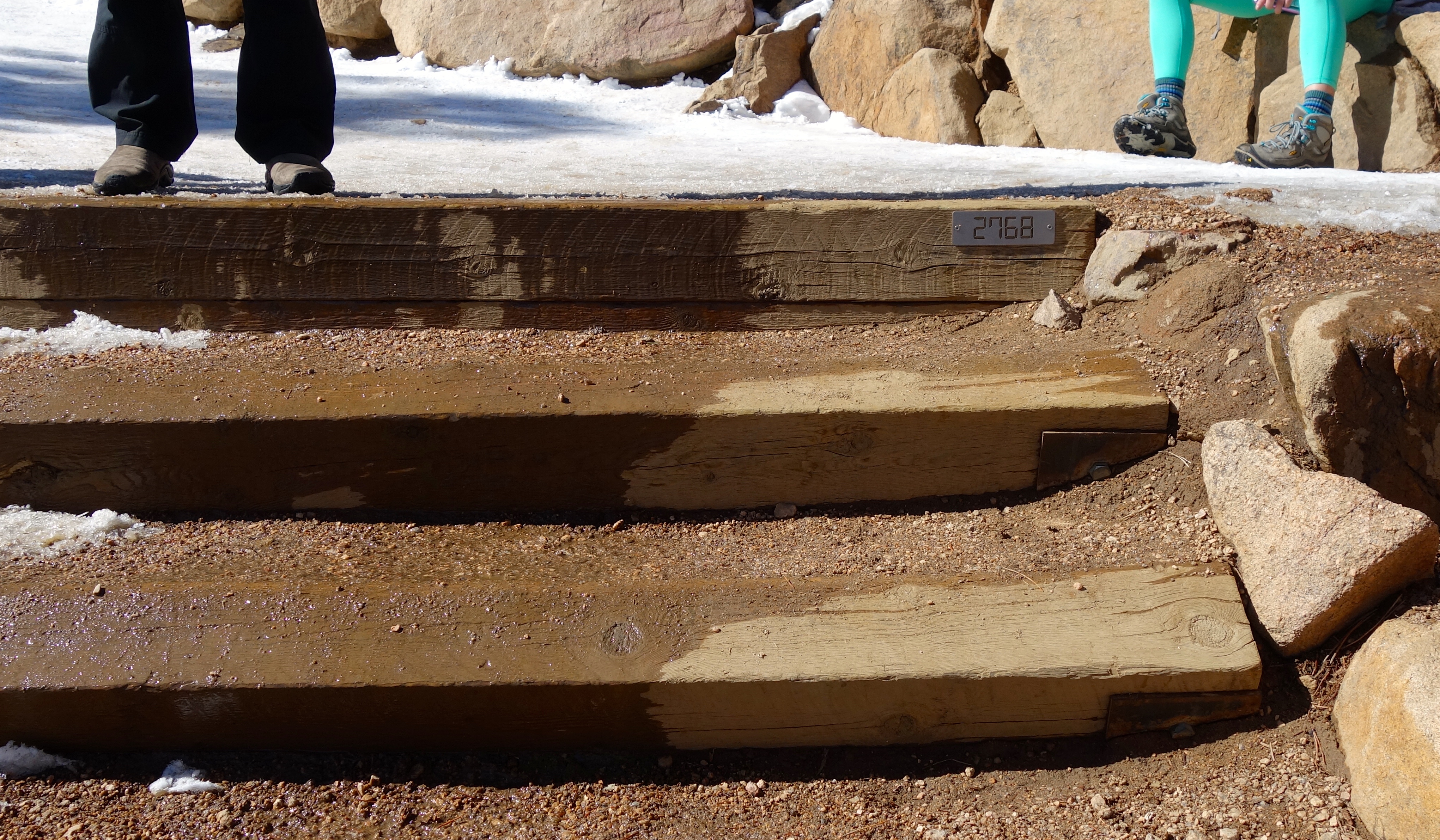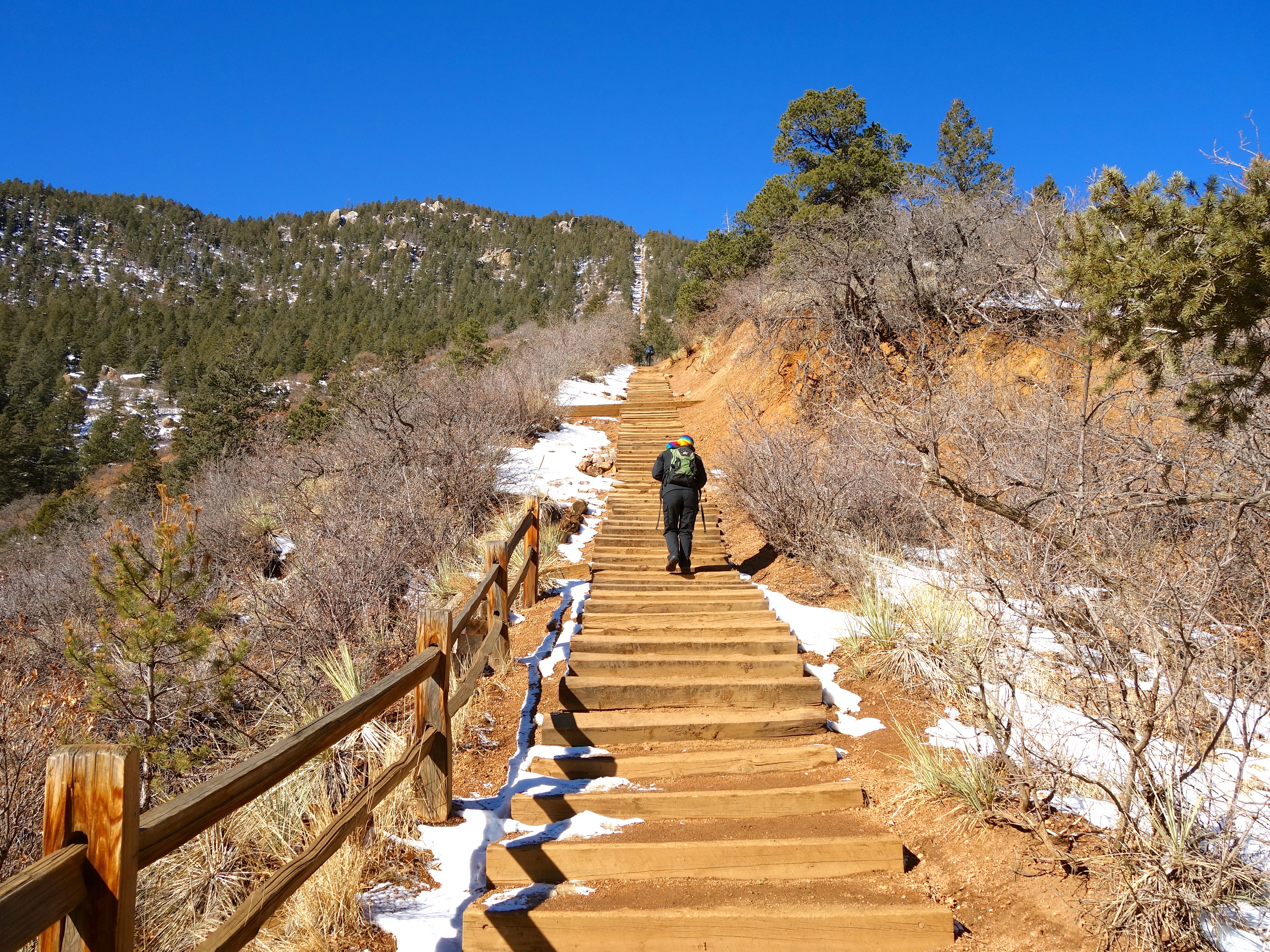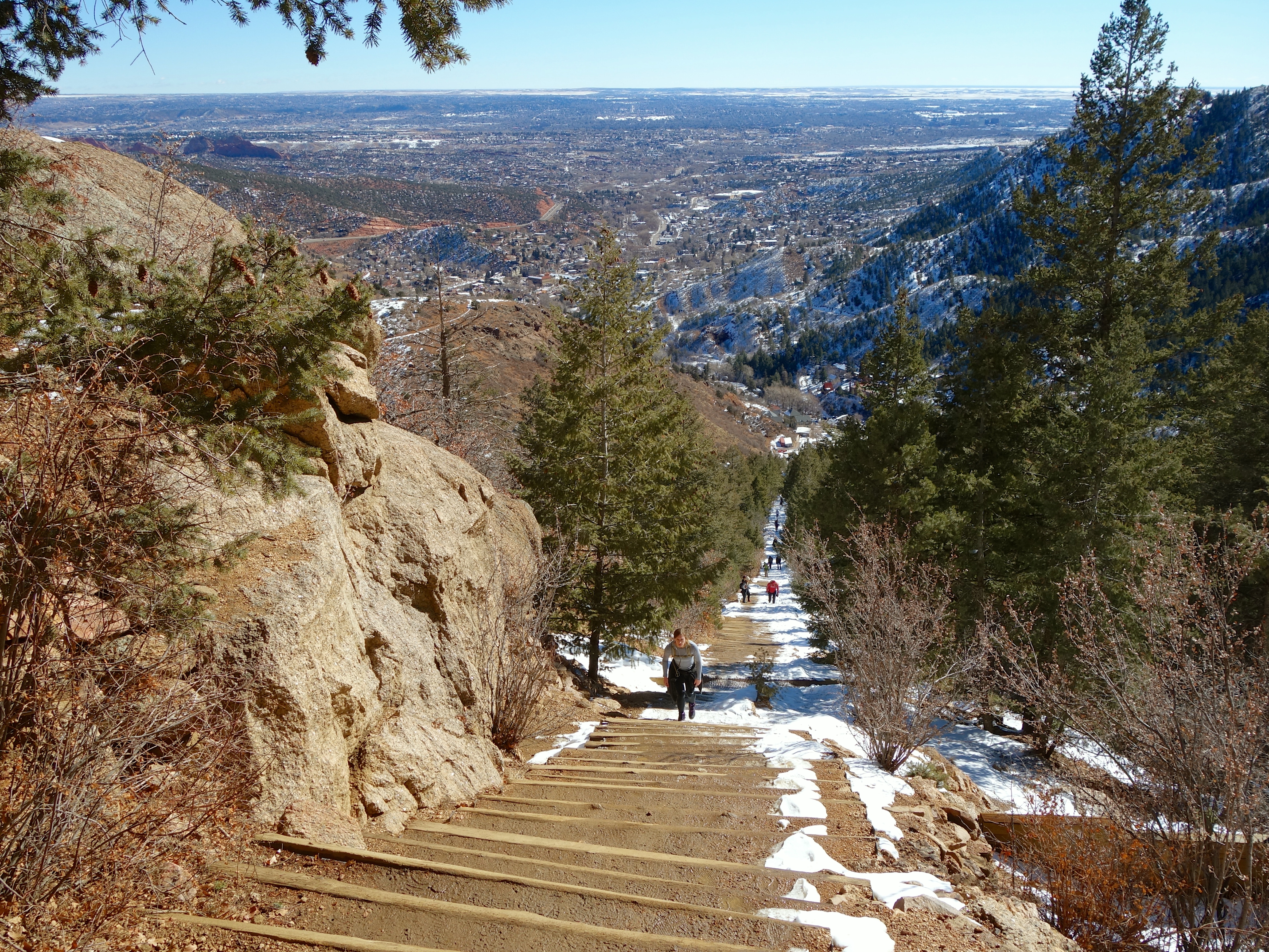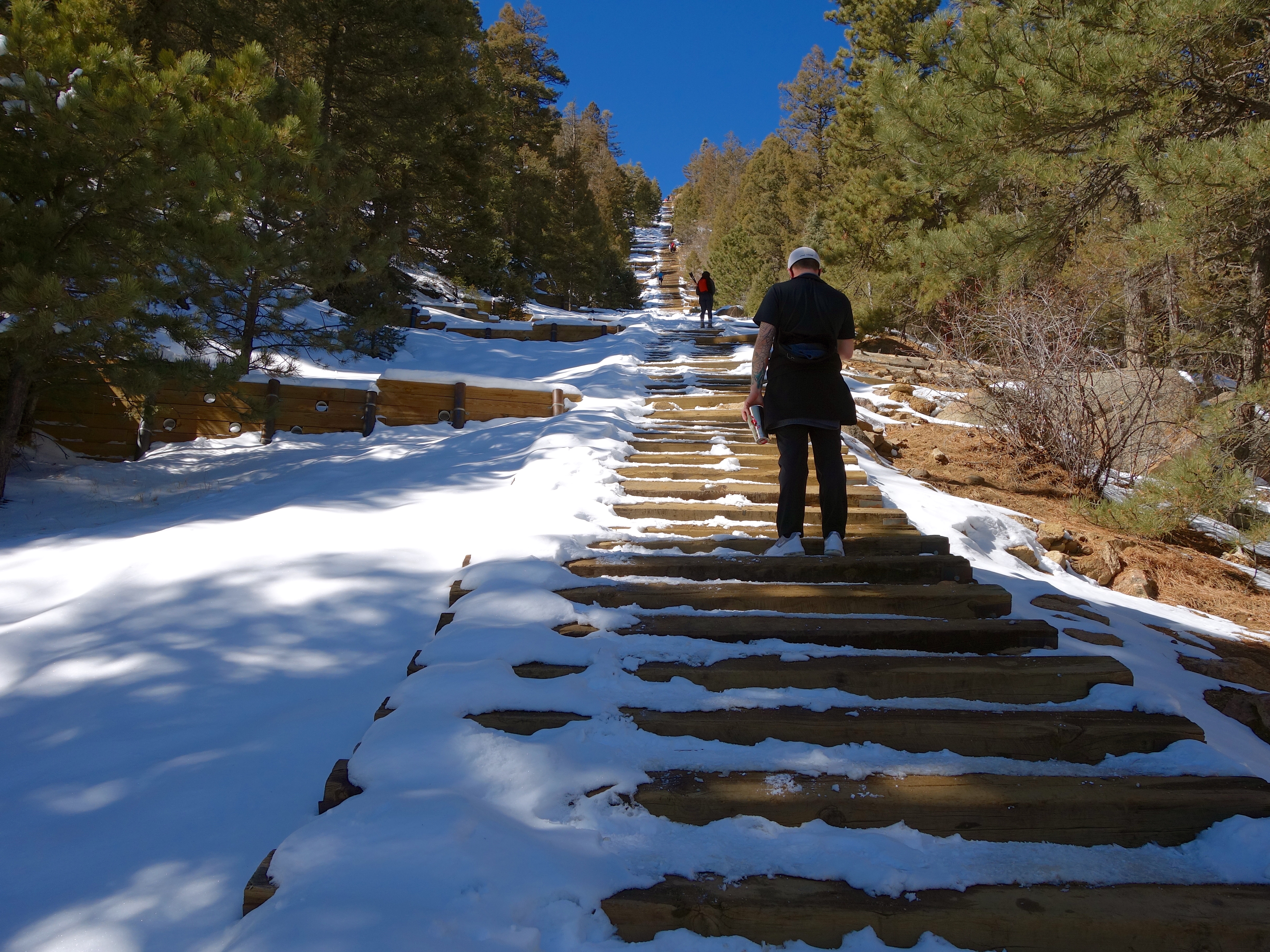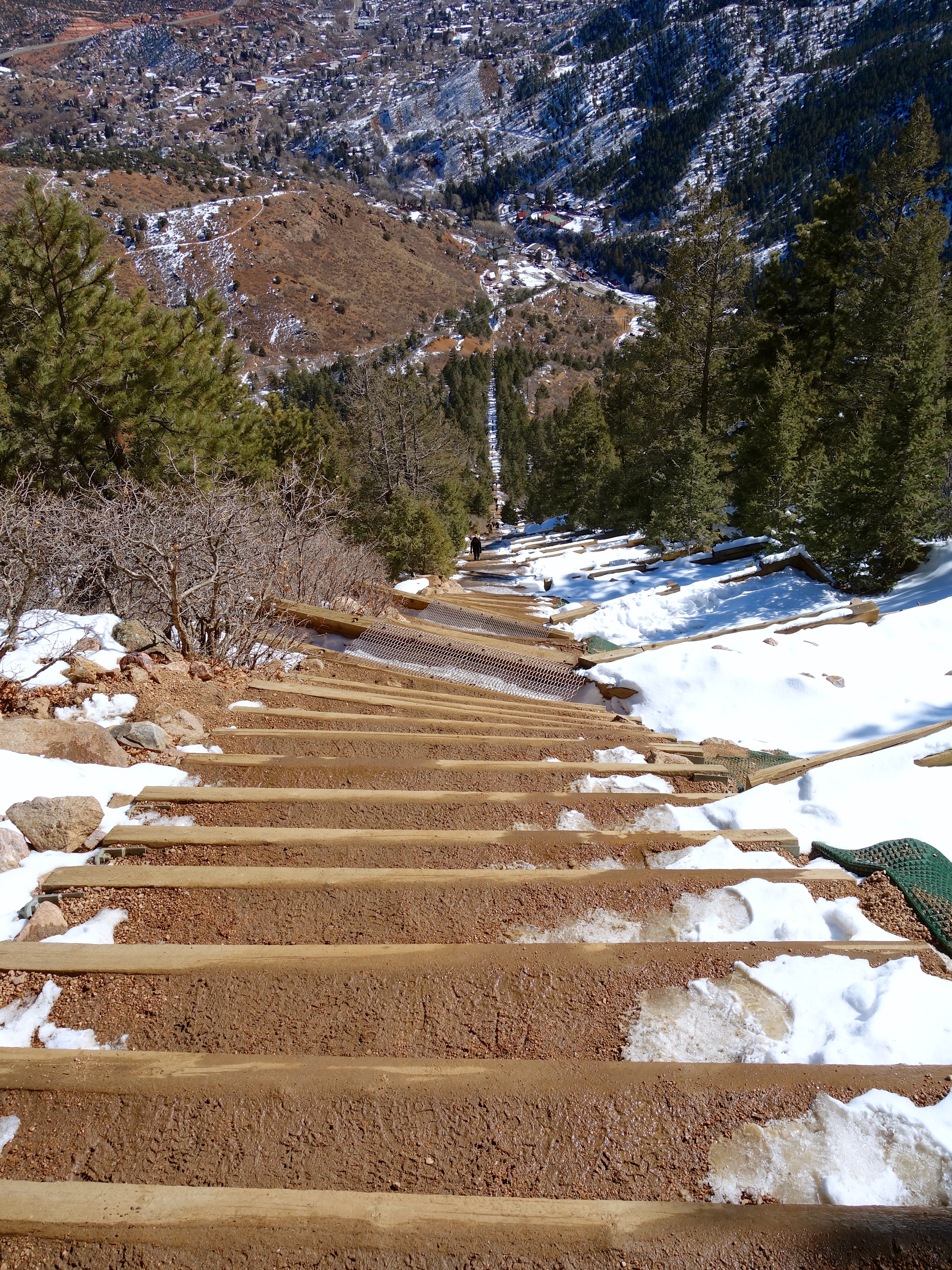 Last weekend the kids and I set our sights on the Manitou Incline. It’s the remnants of what used to be a narrow-gauge railway tram up the side of a mountain, now just a long staircase of railroad ties. The Incline starts at an elevation of 6530 feet and tops out at 8550 feet, an elevation gain of 2020 feet in just under a mile.