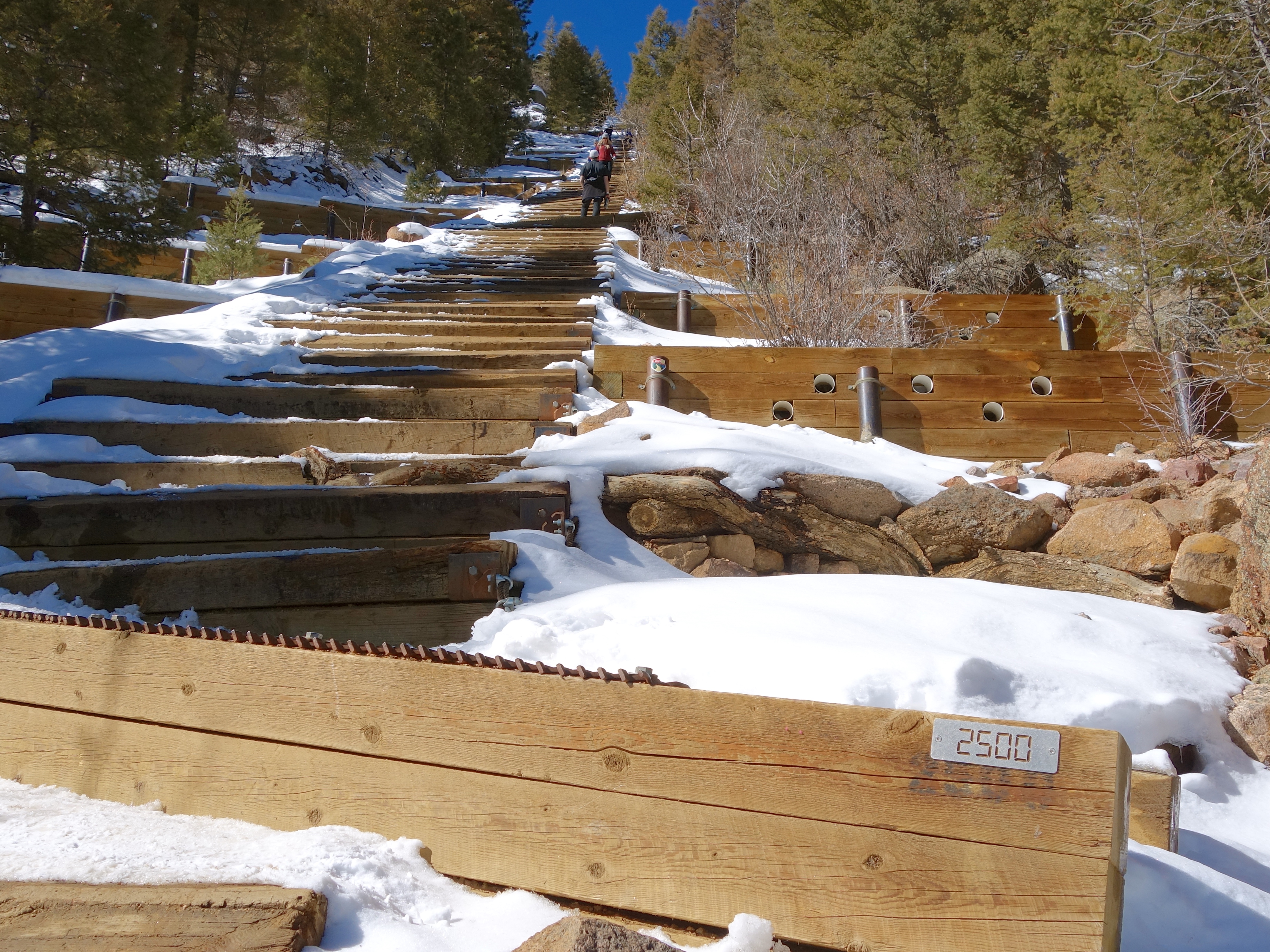 The grade is nice and gradual at first. It’s a good warm-up. Every couple hundred feet there’s a marker that tells you how many steps you’ve climbed, which is nice.