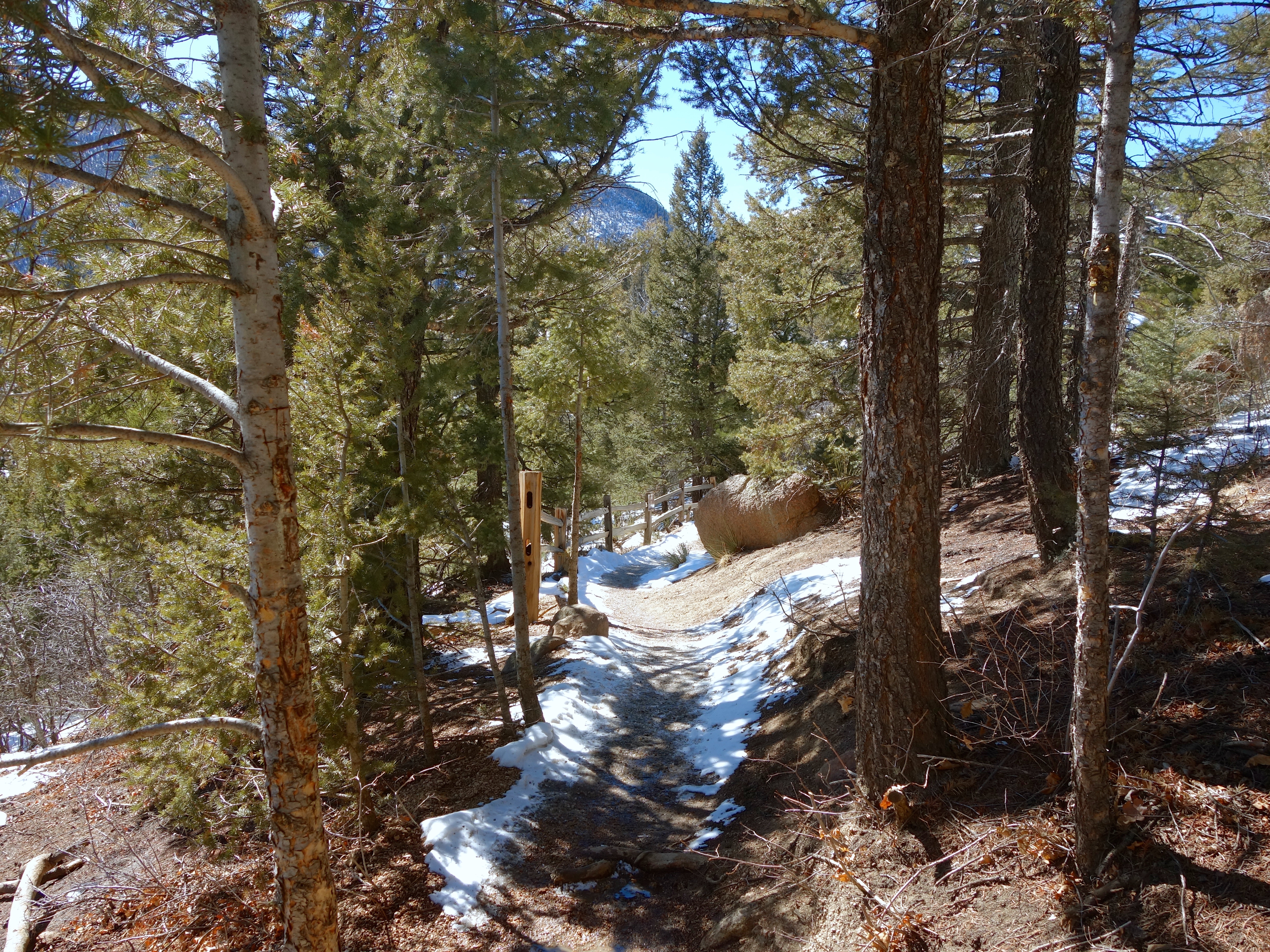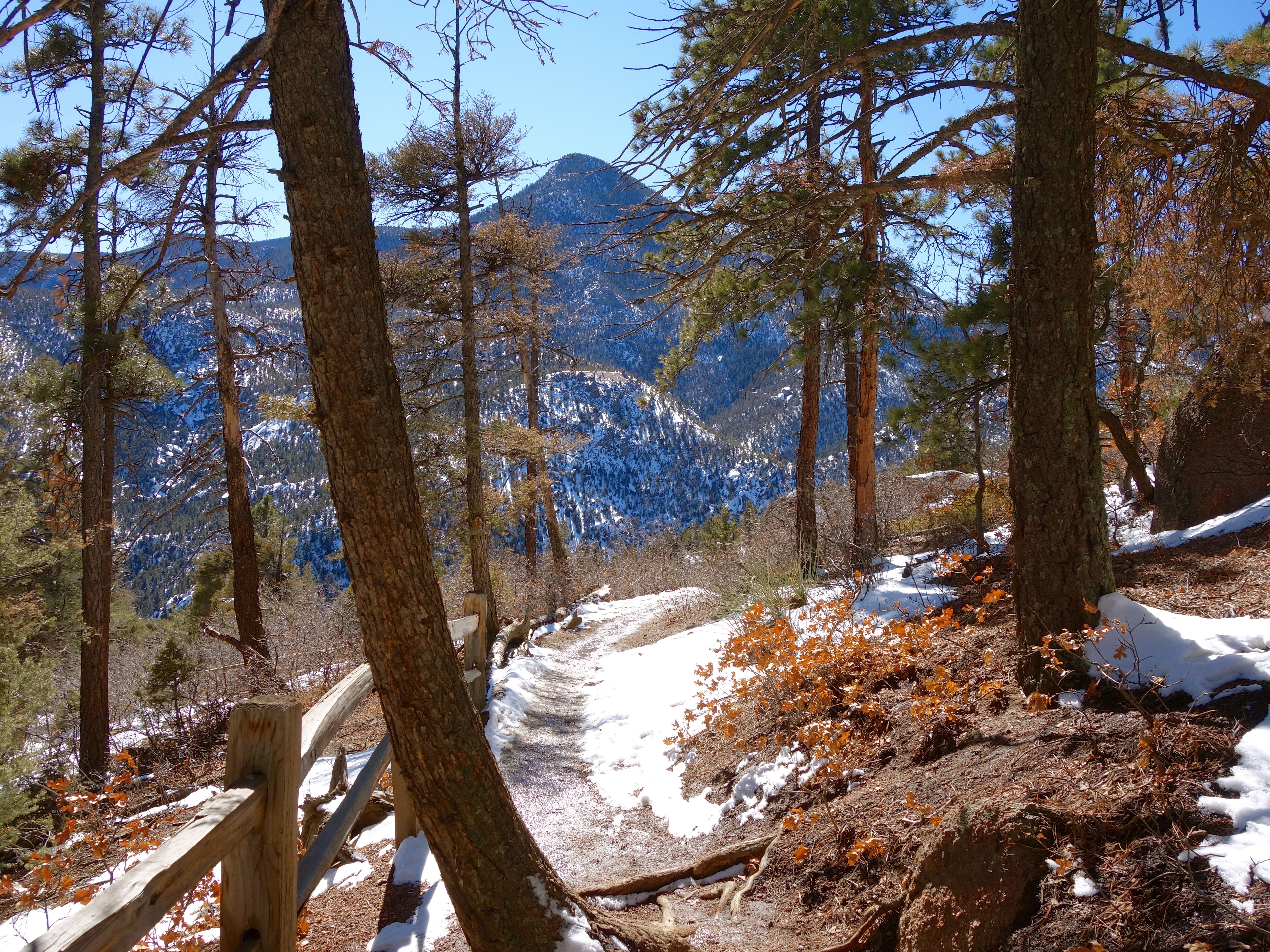 This is another connection to Barr Trail. From the top of the Incline to Base Camp via the trail is almost three miles, but you travel a lot faster going down than coming up. It’s a gorgeous trail even in midwinter.