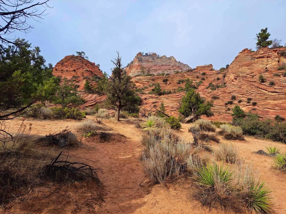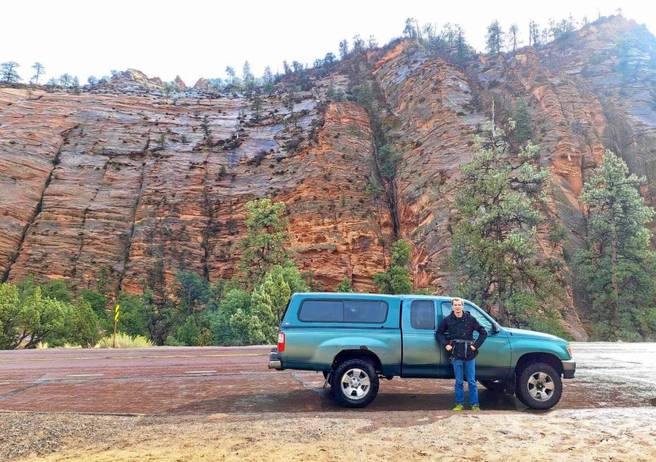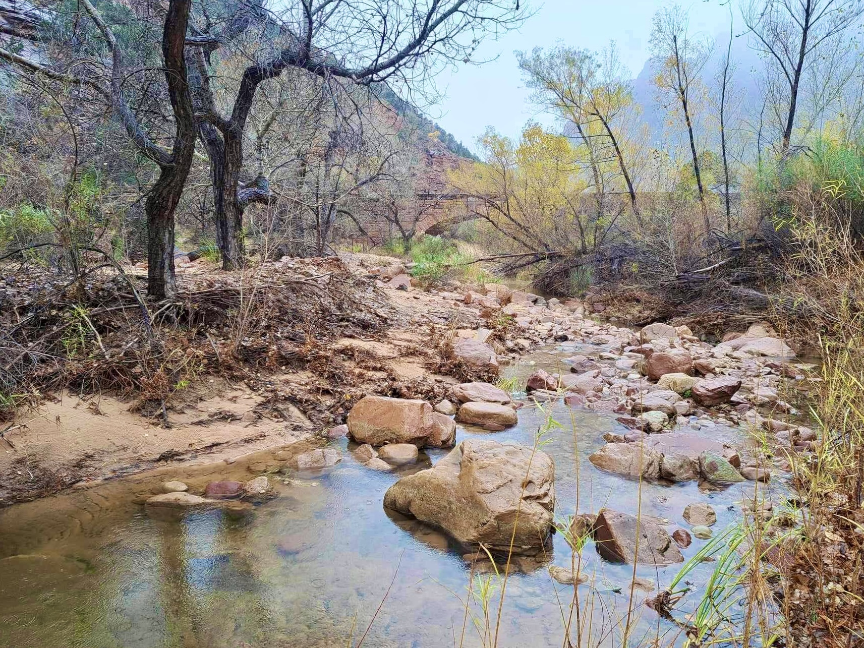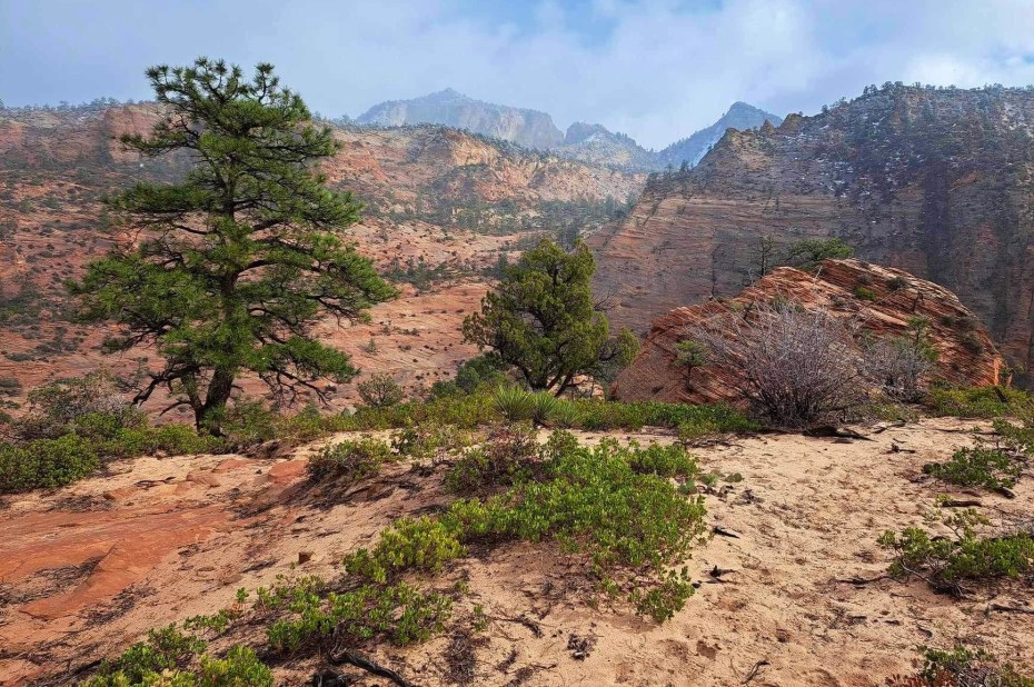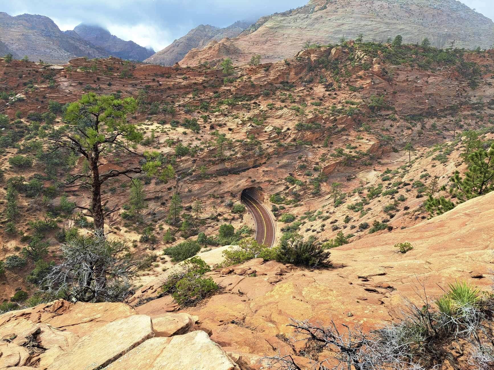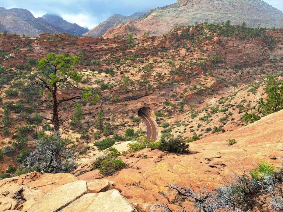 The drive from Horseshoe Bend to Zion National Park is a pretty one that passes through alien rockscapes and cute little towns. Our weather alternated between heavy overcast, drizzling rain and snow flurries.