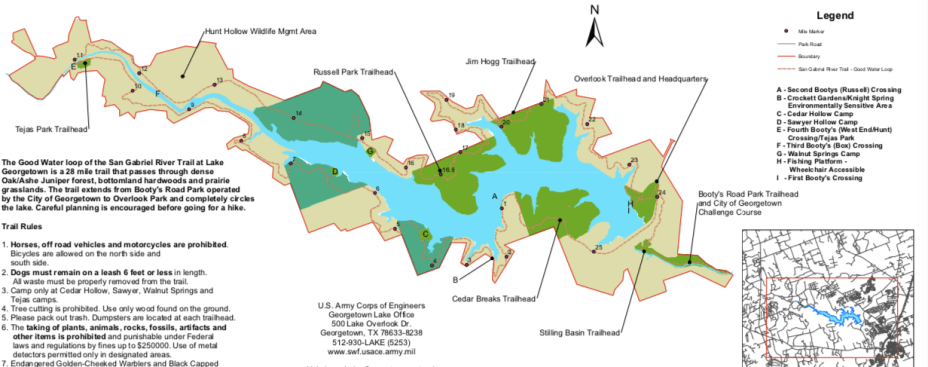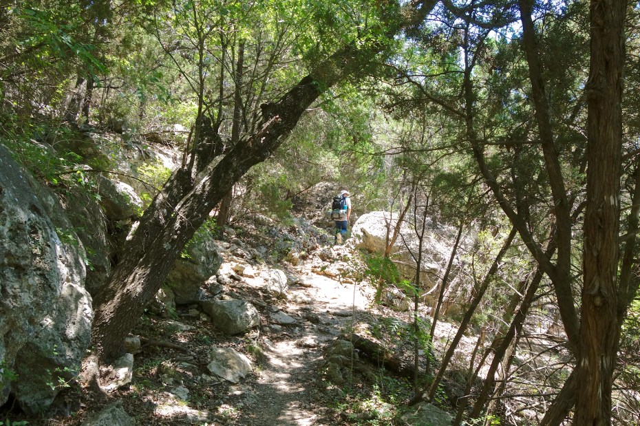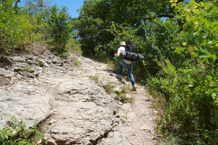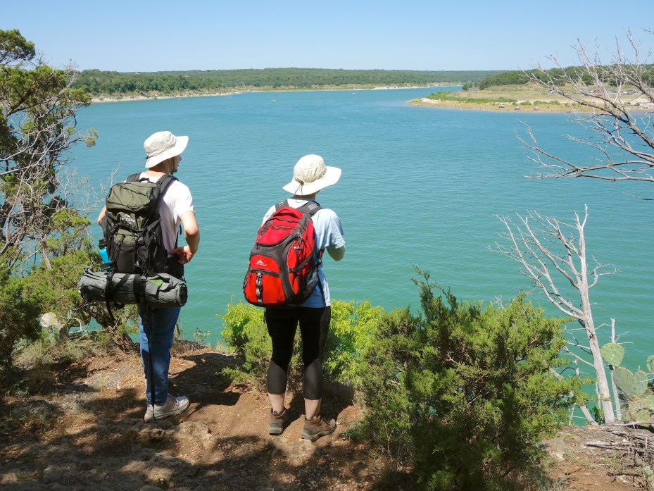Now that the parks are reopening, this weekend seemed like a good time to try out a nice safe through-hike with training wheels and safety nets. The Goodwater Loop Trail around Lake Georgetown is a good starter hike, because there are campgrounds all along it and help is never too far away.