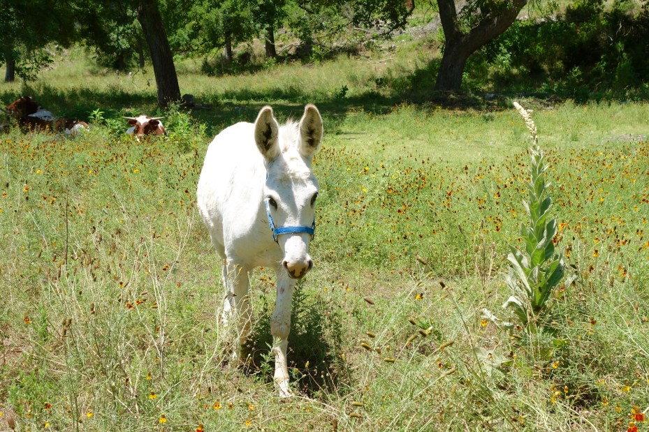 A donkey came up for pets.