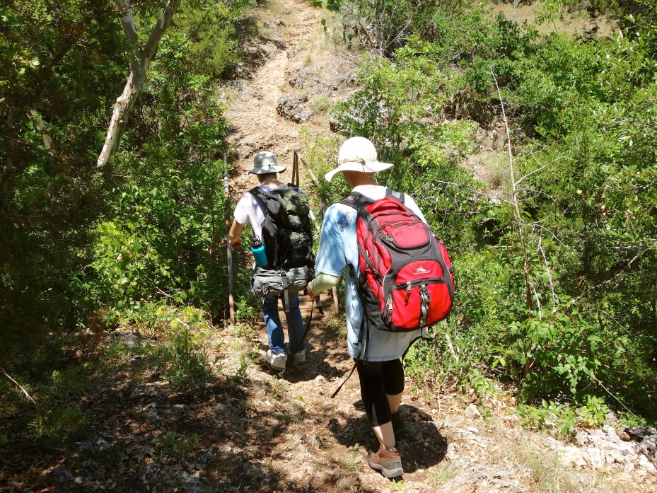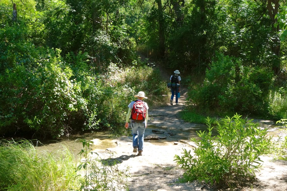 Texas is in full summer now, with highs in the 90s every day. We passed a couple of primitive campgrounds and detoured into them in hopes of refilling our water flasks, but all of their spigots had been capped off. We ran out of water somewhere around mile 10. In the future we will supplement our water supply with portable purifiers/filters so we can drink out of lakes and streams if need be.