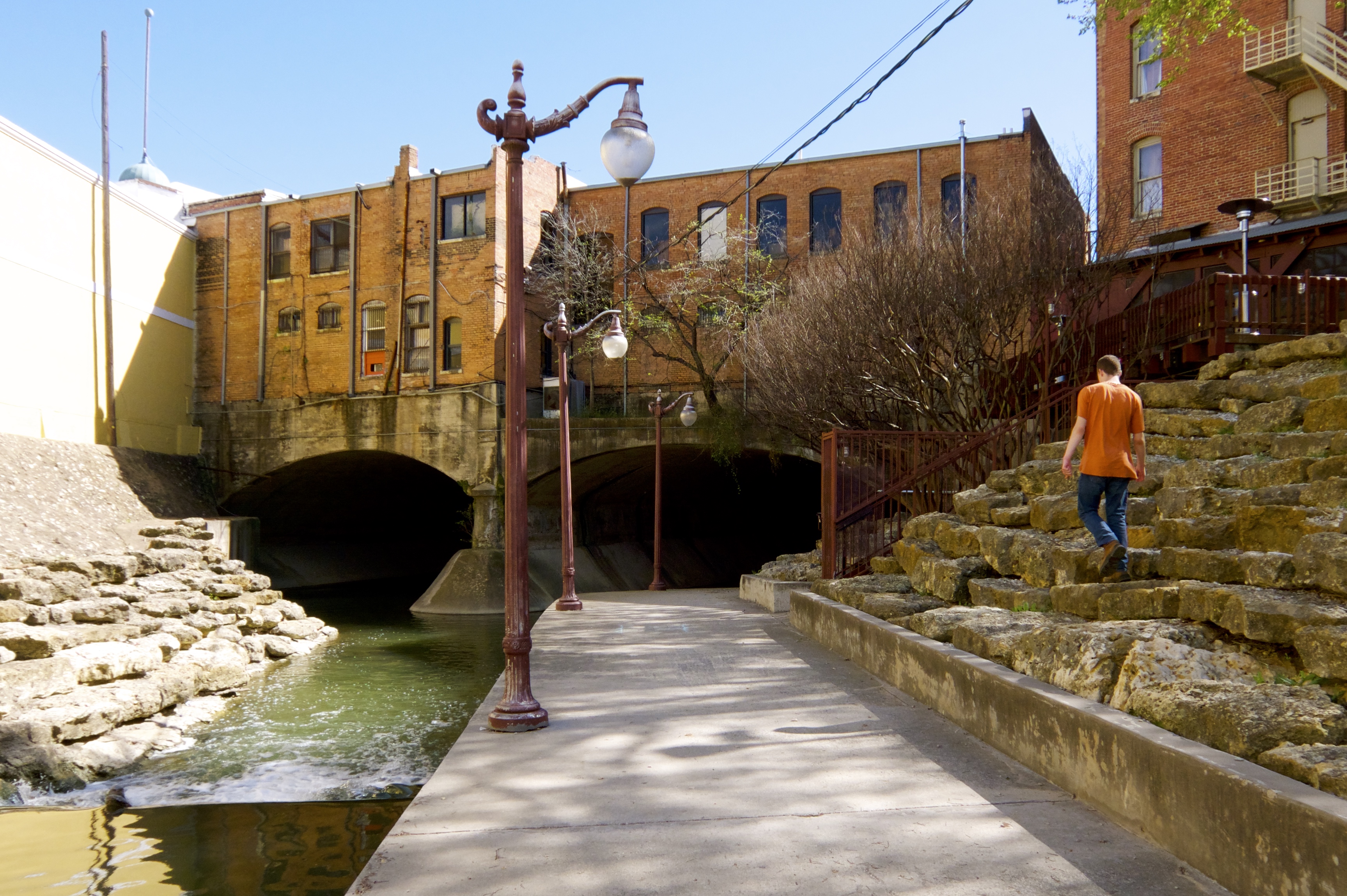 Sorry about the weird filter, I wasn’t paying attention to my camera settings. Anyway, you access the Riverwalk via staircases at every street crossing. Once you’re down there, everything is magical.