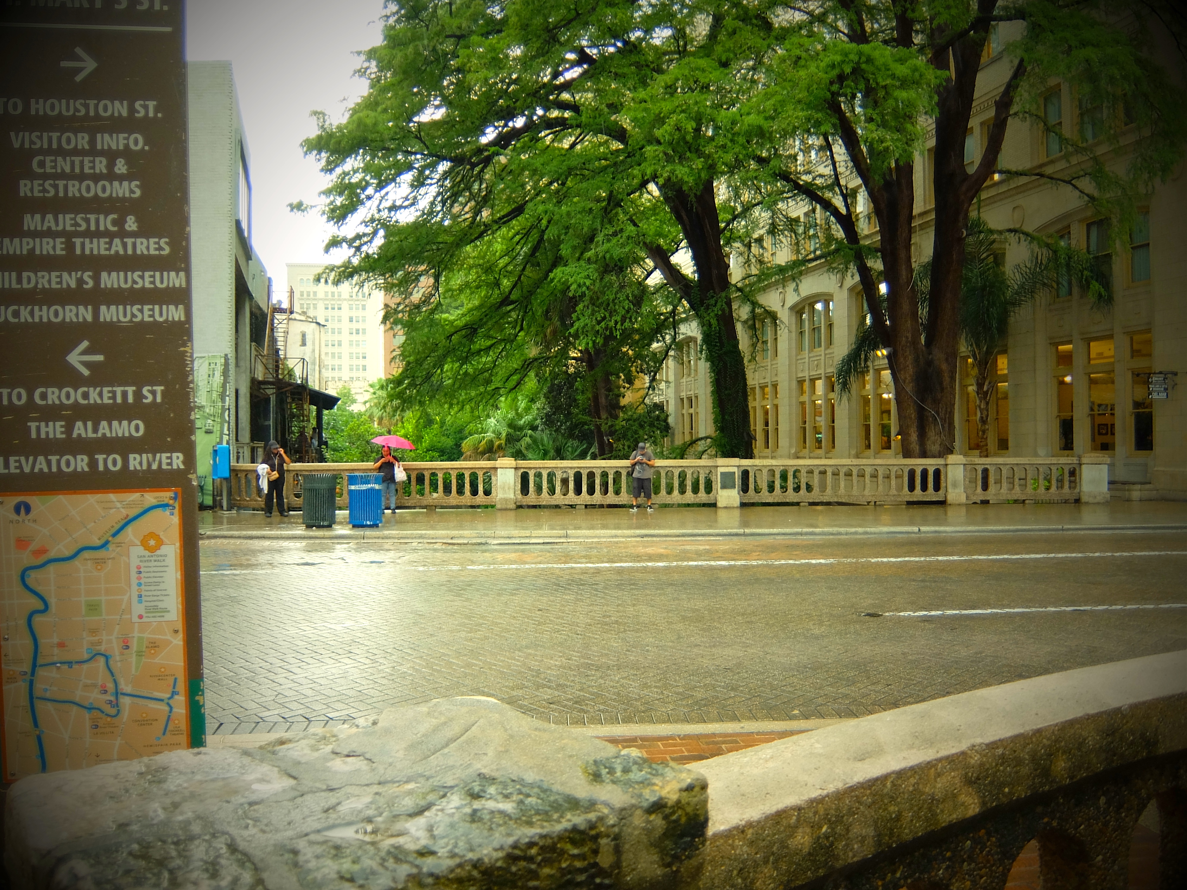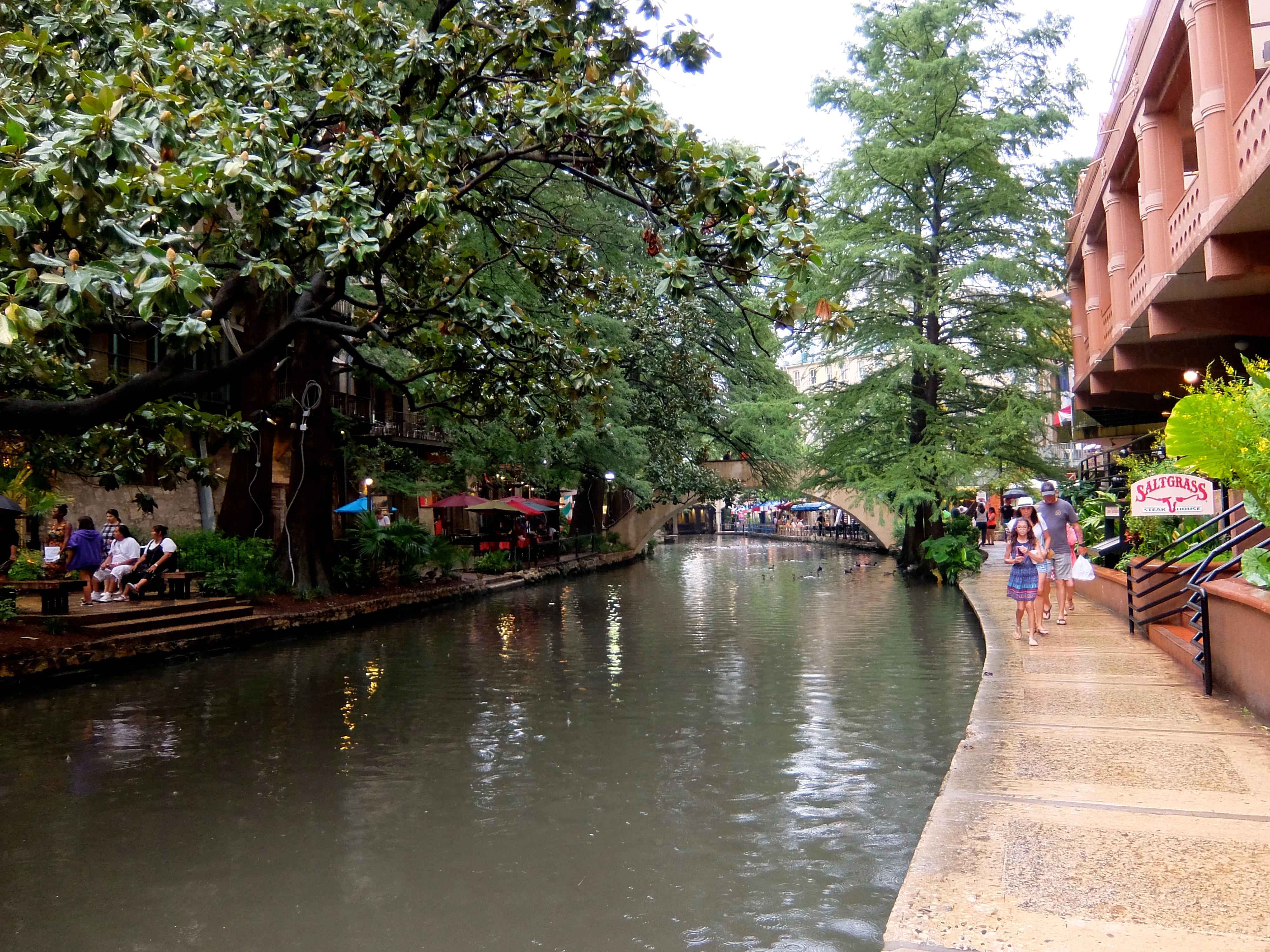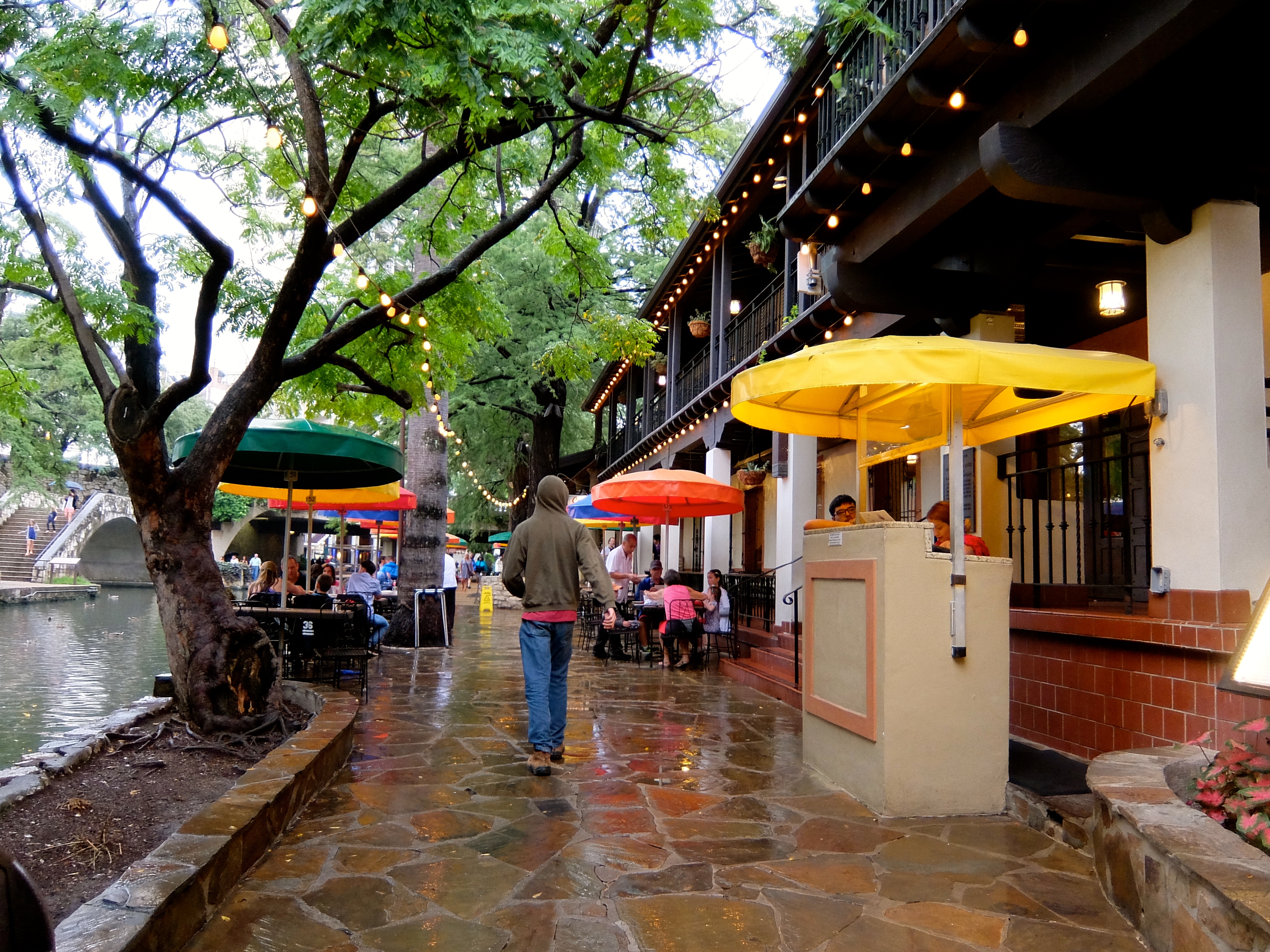 The rain petered out to on-and-off sprinkles just as we found a place to park near the Riverwalk. Sweet!