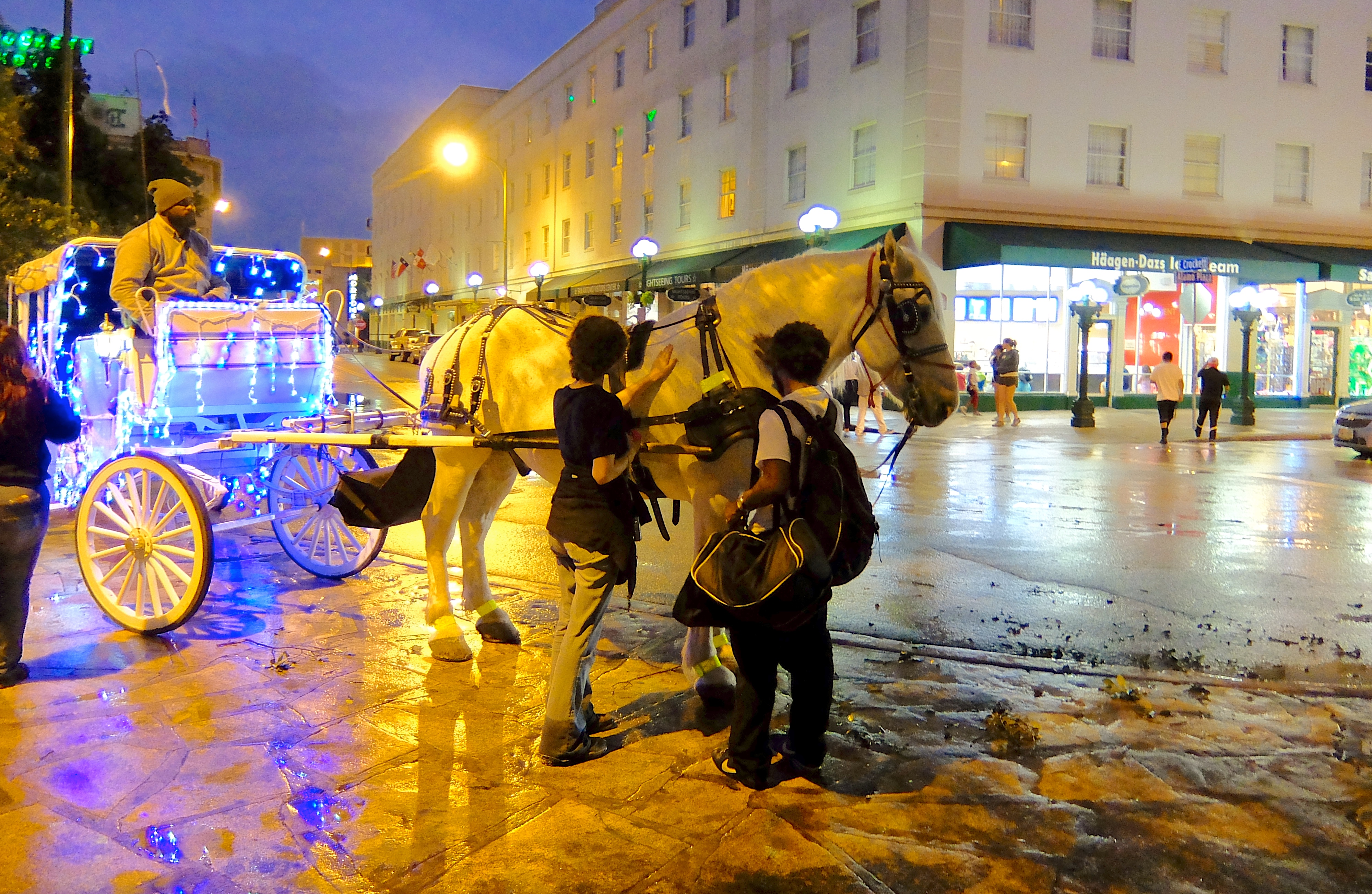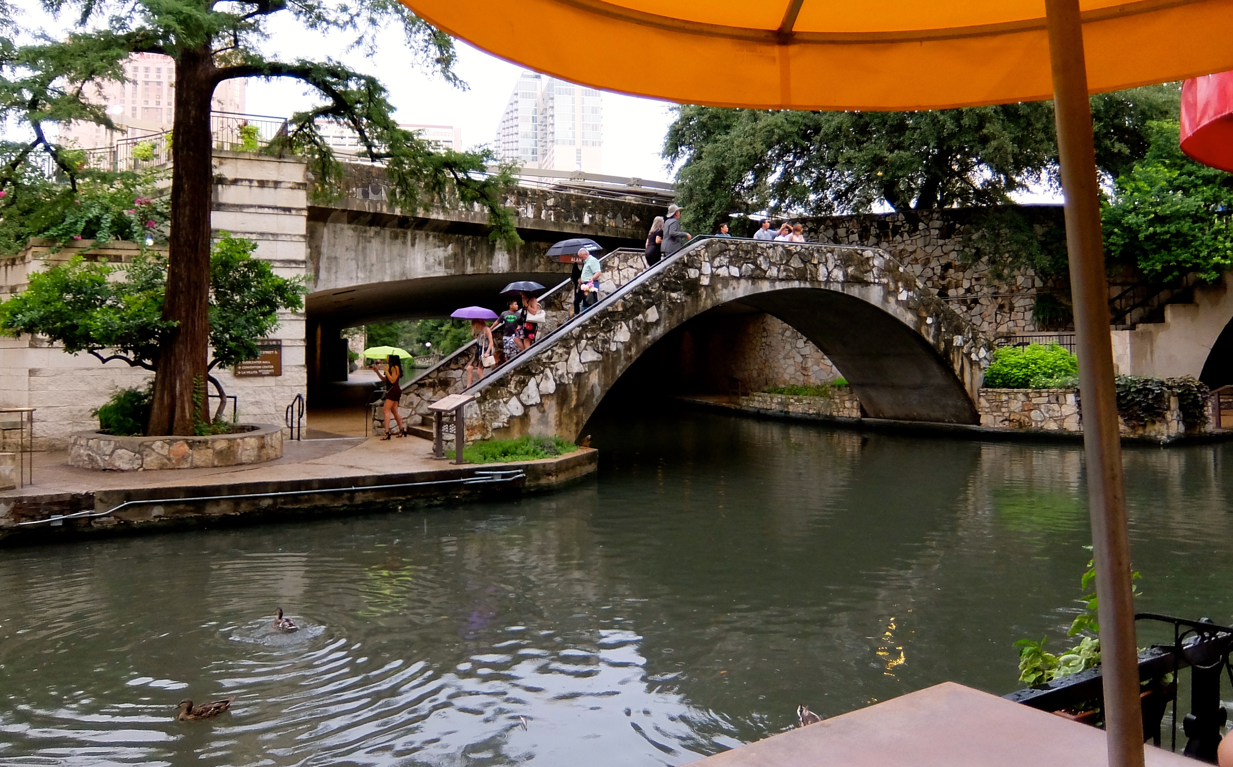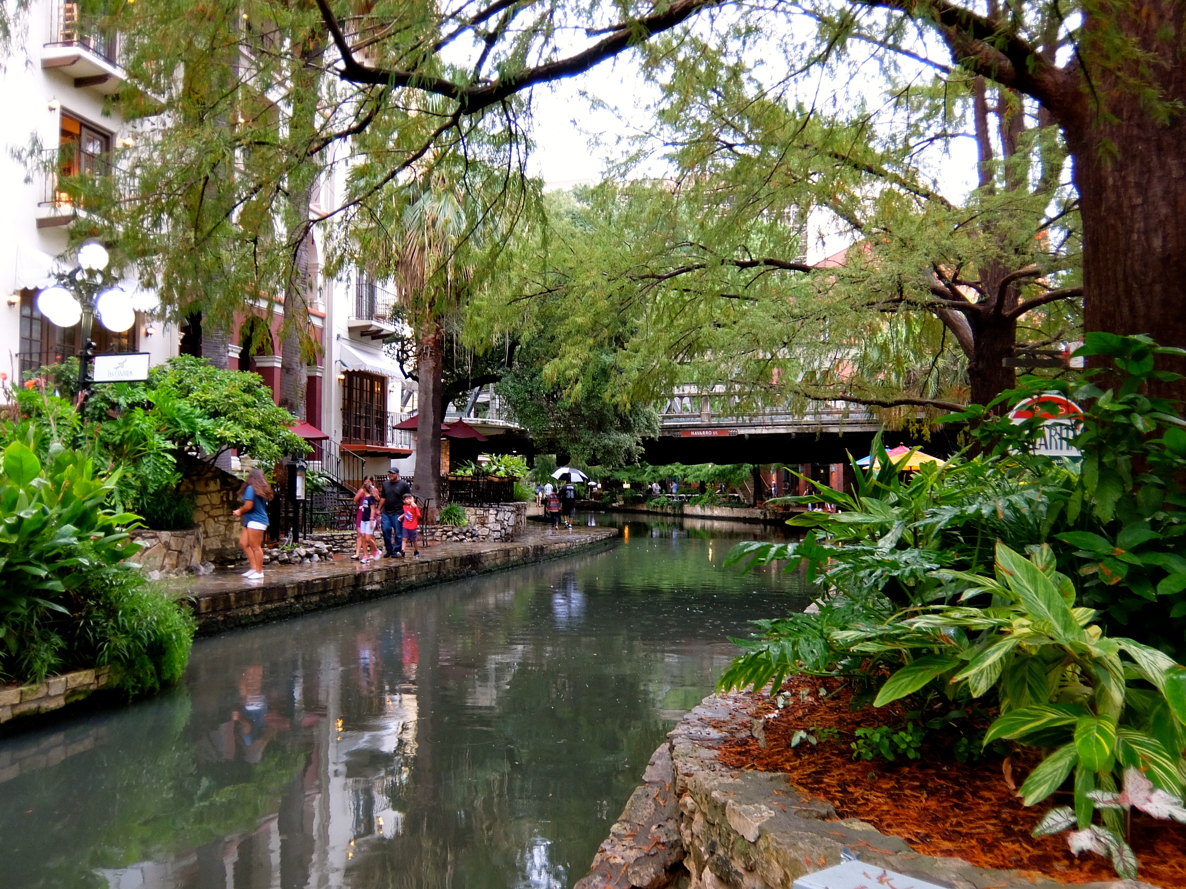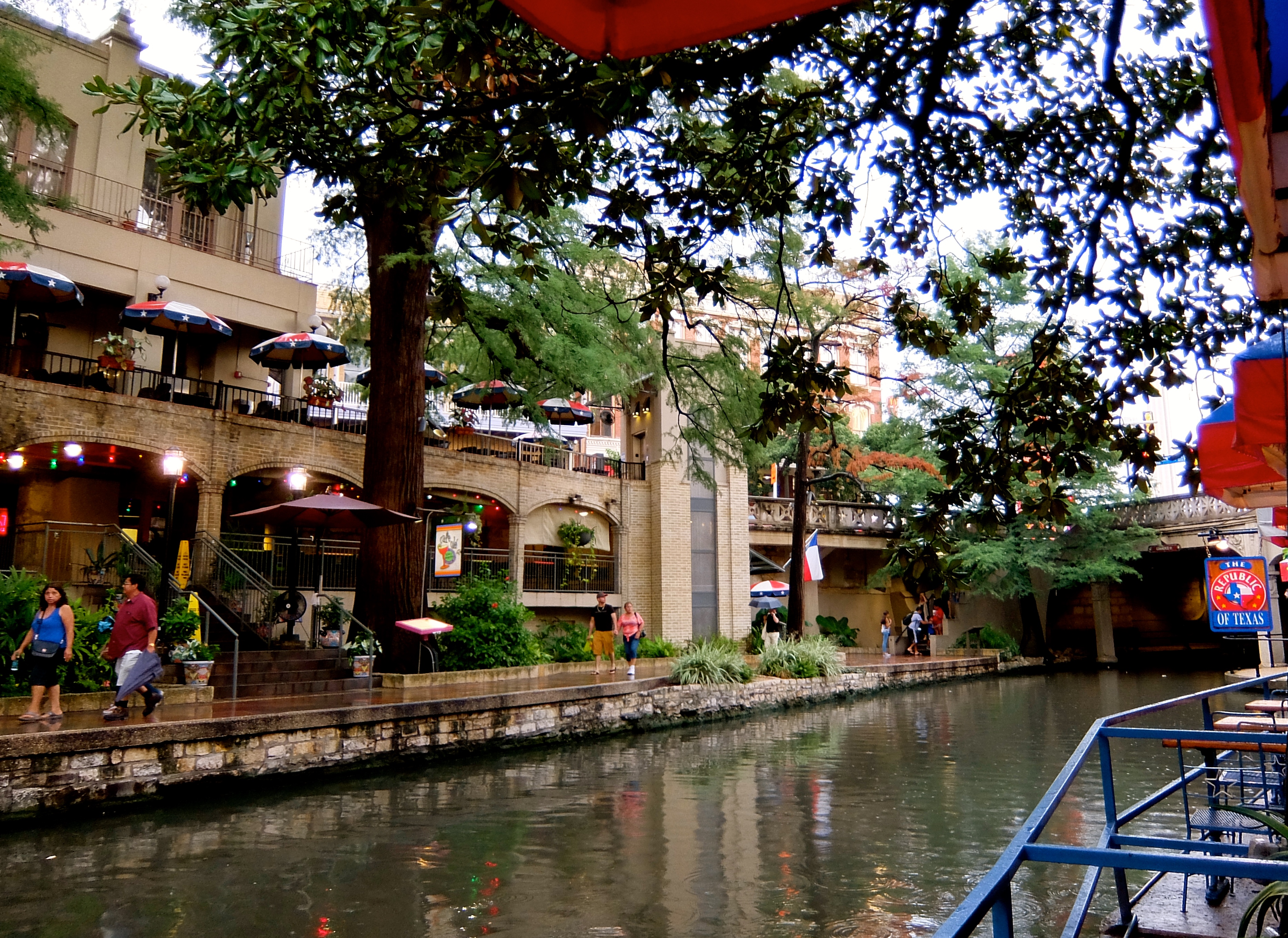 The rain petered out to on-and-off sprinkles just as we found a place to park near the Riverwalk. Sweet!