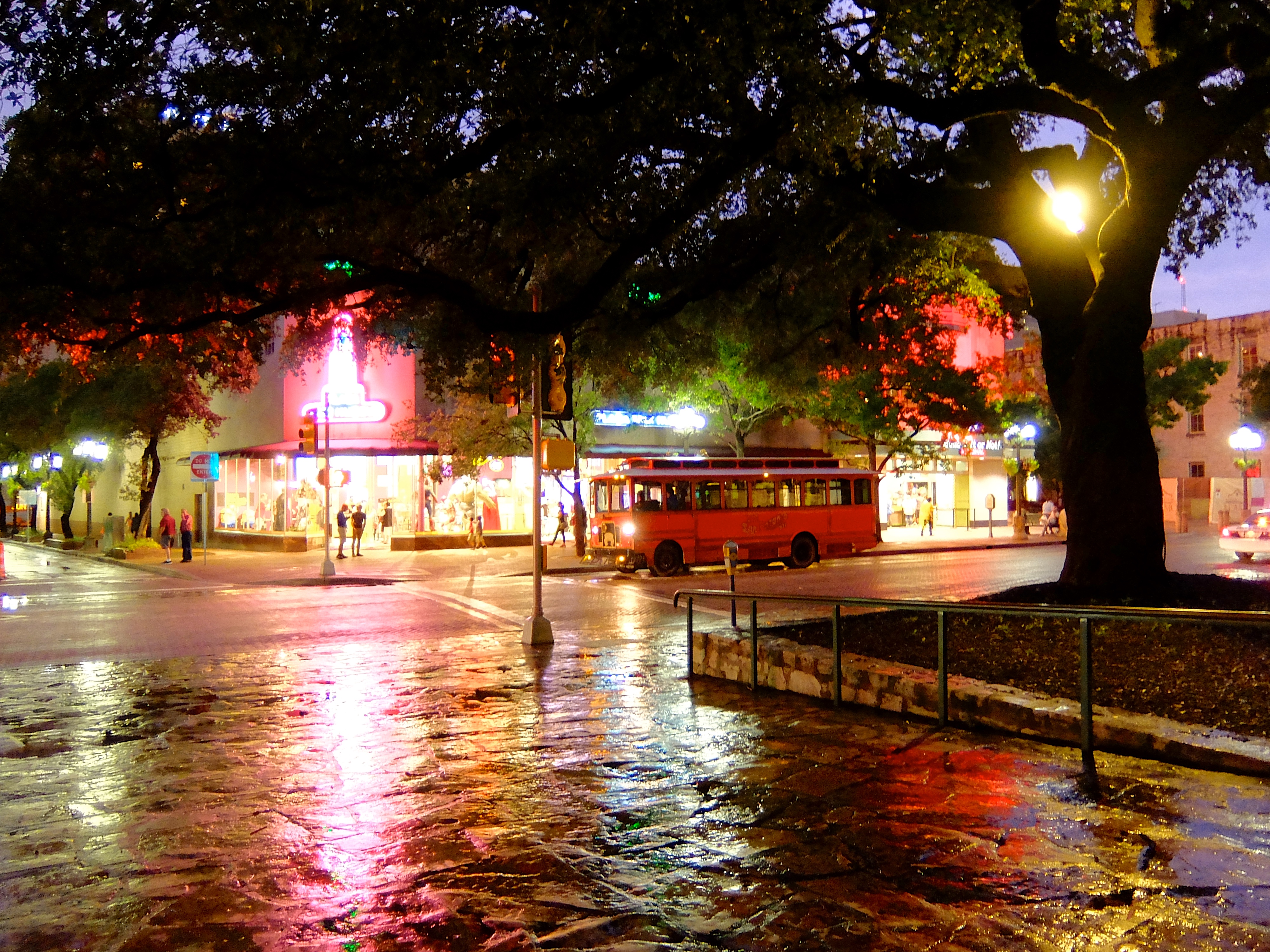 The rain was coming down in sheets by the time we got to Austin, so our plans to check out the trails around Lady Bird Lake were rescheduled for the return trip. The San Antonio Riverwalk wasn’t looking too promising at that point either. Around 4:30 pm we checked into a hotel in San Marcos to wait out the worst of the rain and see if the weather would clear.