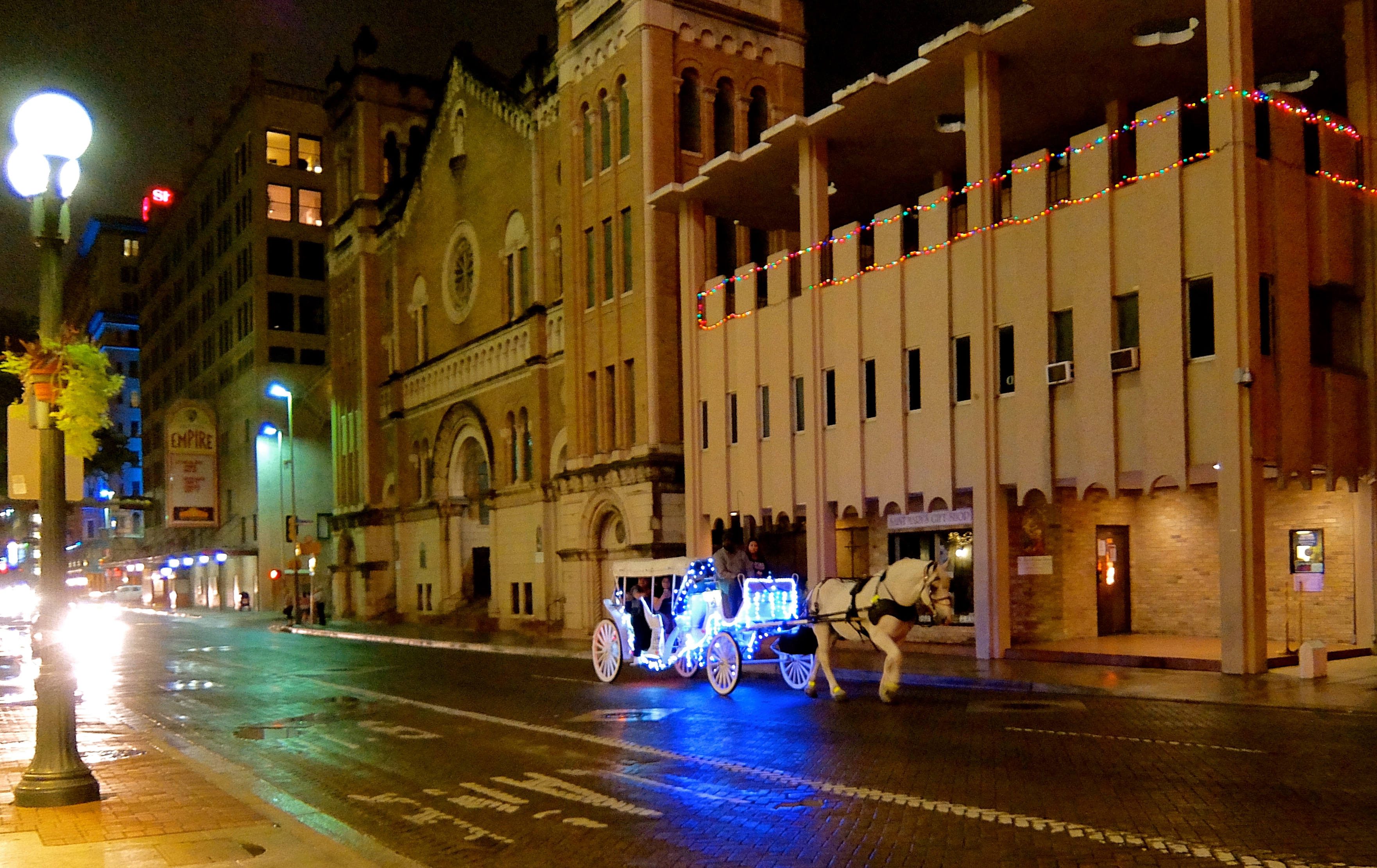 When the sun set, we headed over to get a look at the Alamo, which is within easy walking distance of the Riverwalk. Just based on what people had told us, we were pretty much expecting to see a crumbling ruin huddled in between a 7-11 and a Denny’s. Our expectations were wildly exceeded. The whole downtown area is completely gorgeous.