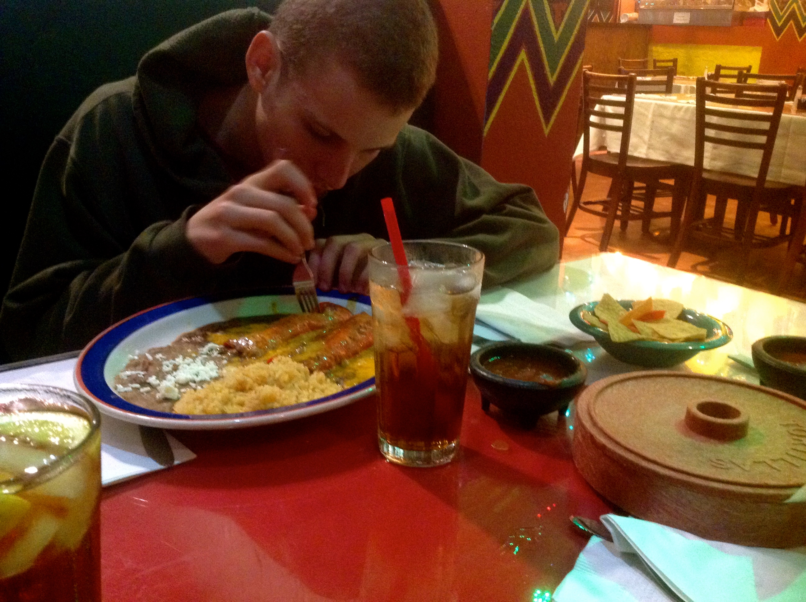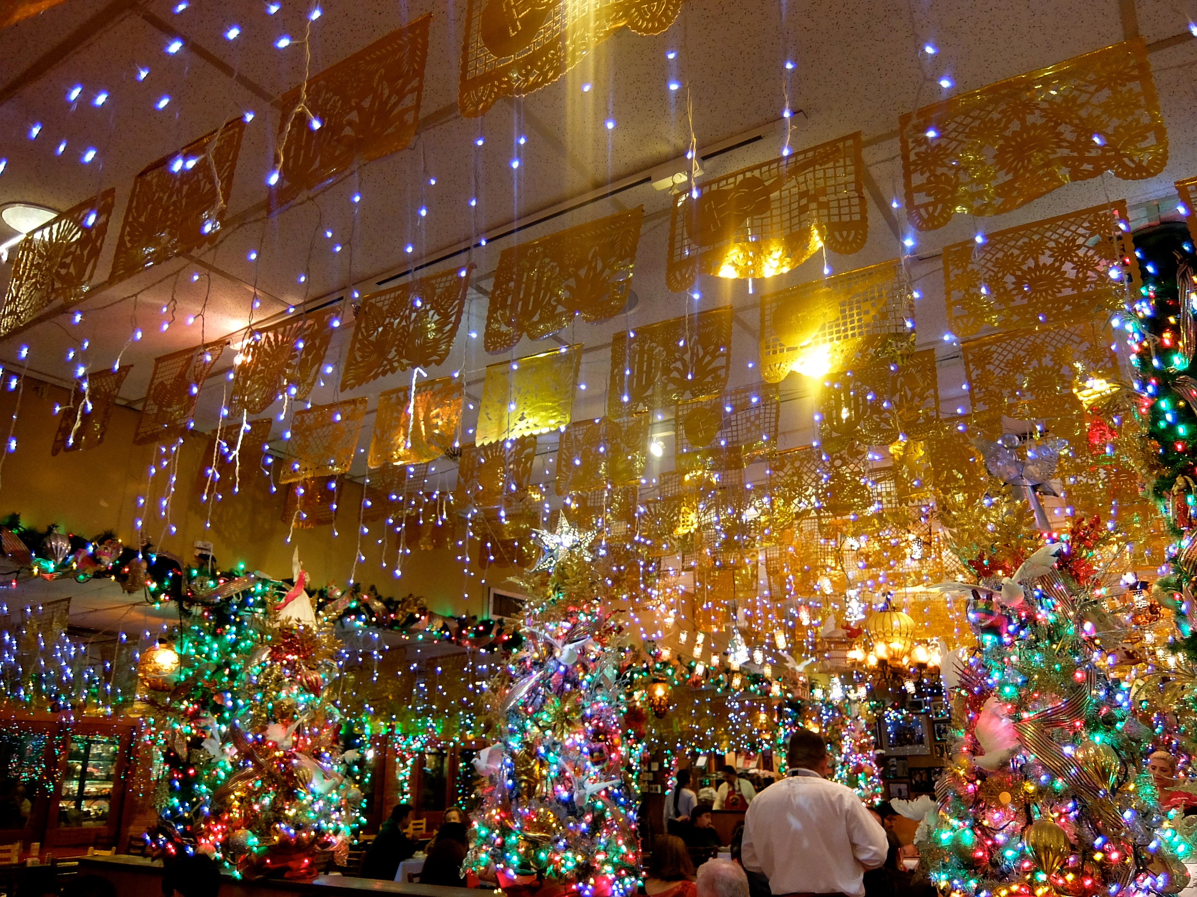 My method of navigation in unfamiliar places is to drive toward the nearest freeway (never far away in Texas cities), pull into the first McDonald’s or Starbucks I see (also never far away), and use their wifi to chart a course on my iPad. When I did this to search for Mi Tierra, I realized that we could have walked from downtown to the restaurant, if it weren’t after dark in a strange city. We could have walked there from the McDonald’s, for that matter, but the rain was starting to pick up again.