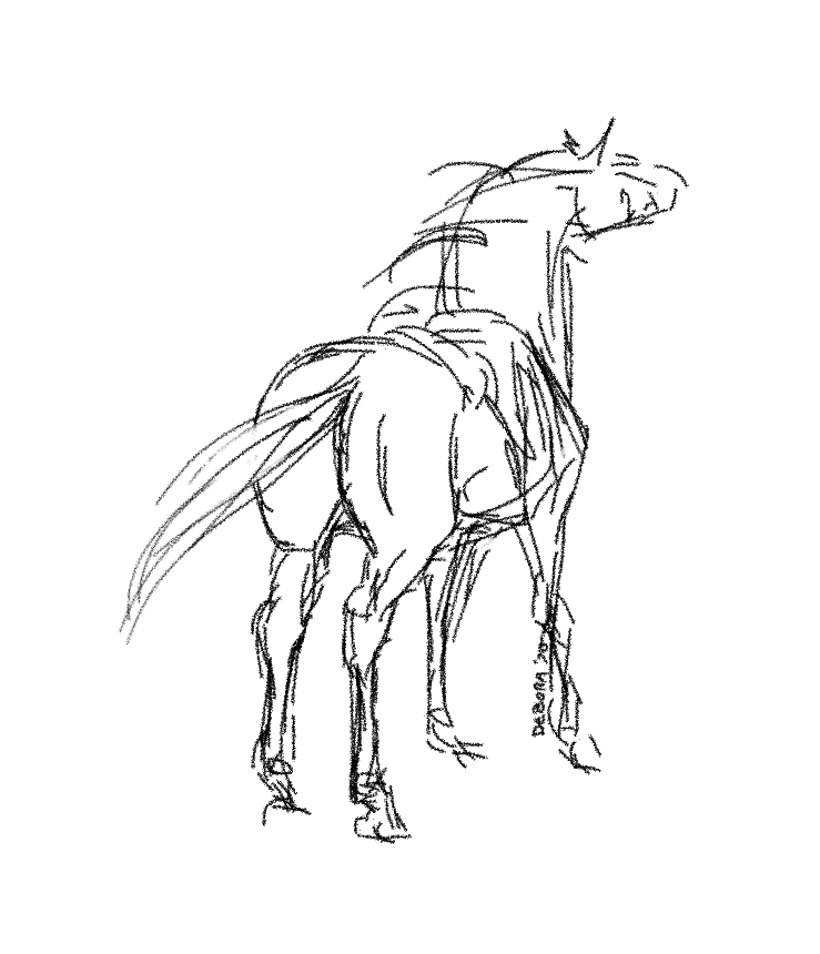 So much going on I forgot to do a sketch this week, and now I’m away from my pencils and paper, and my new iPad is incompatible with my 1st gen Apple Pencil. So while I wait for the newer pencil to arrive, the best I can do is this digital “fingerpainting” of a horse. The week’s not quite over yet, right?