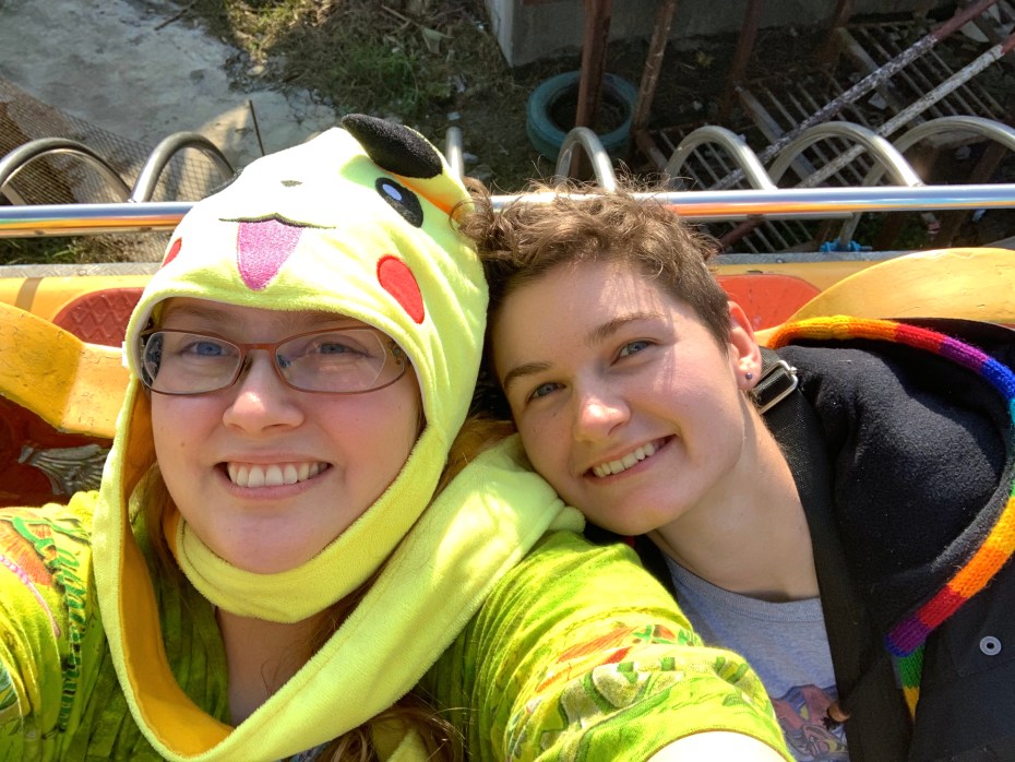 My gallant Saturn, may she rest in peace, died a sudden and unjust death last fall when another car ran her out of her freeway lane and into the concrete divider. My new car has more bells and whistles than I’m used to, so I didn’t recognize the ominous-looking caliper-and-exclamation-point icon. Not going to lie, I was imagining the worst. But I stopped to get ice for the cooler as planned while Elizabeth googled warning light symbols for my car. Turned out it was just a low-tire-pressure warning. Whew!